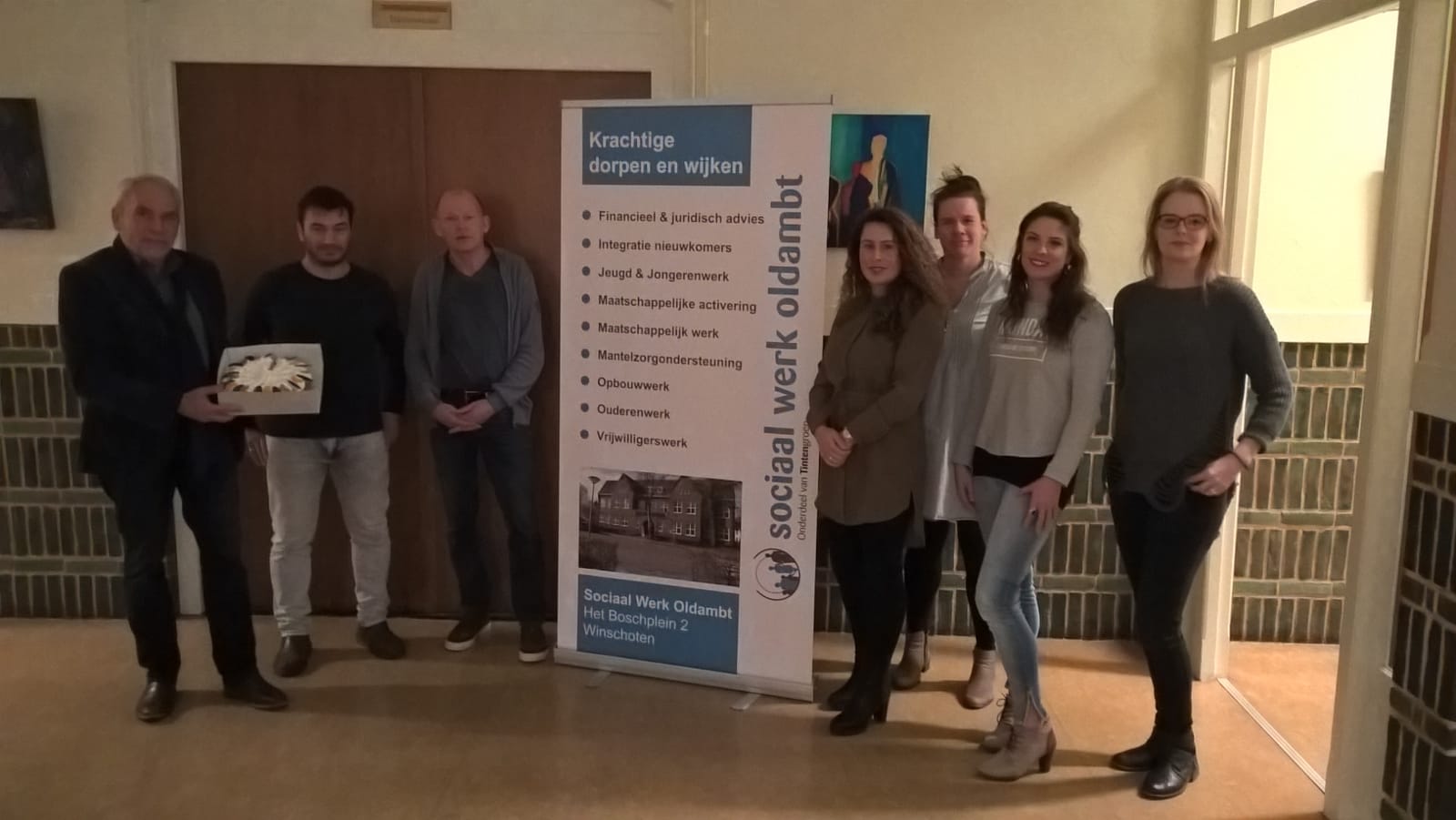 Gemeente Oldambt werkt voor de huisvesting van vergunninghouders samen met Bureau Vluchtelingen & Nieuwkomers Oldambt (BVNO) van Sociaal Werk Oldambt en de woningcorporaties Acantus en Groninger Huis. Als dank voor de goede samenwerking bracht wethouder Bard Boon de drie samenwerkingspartners gisteren een taart.