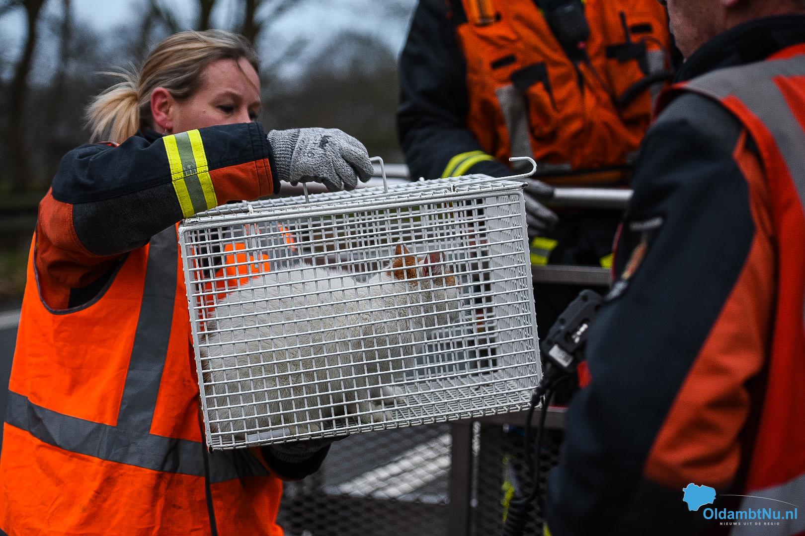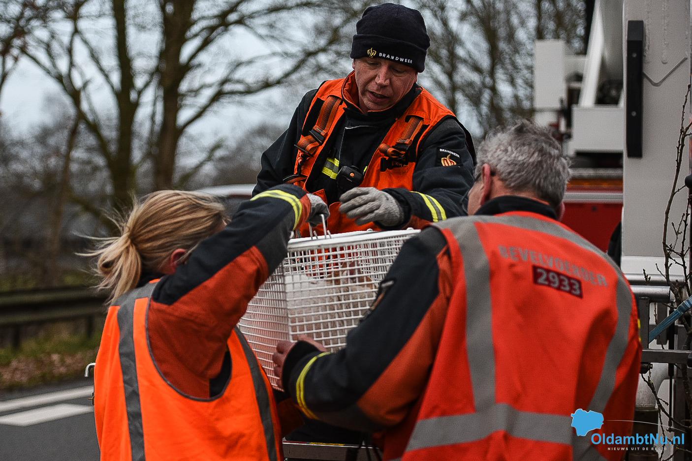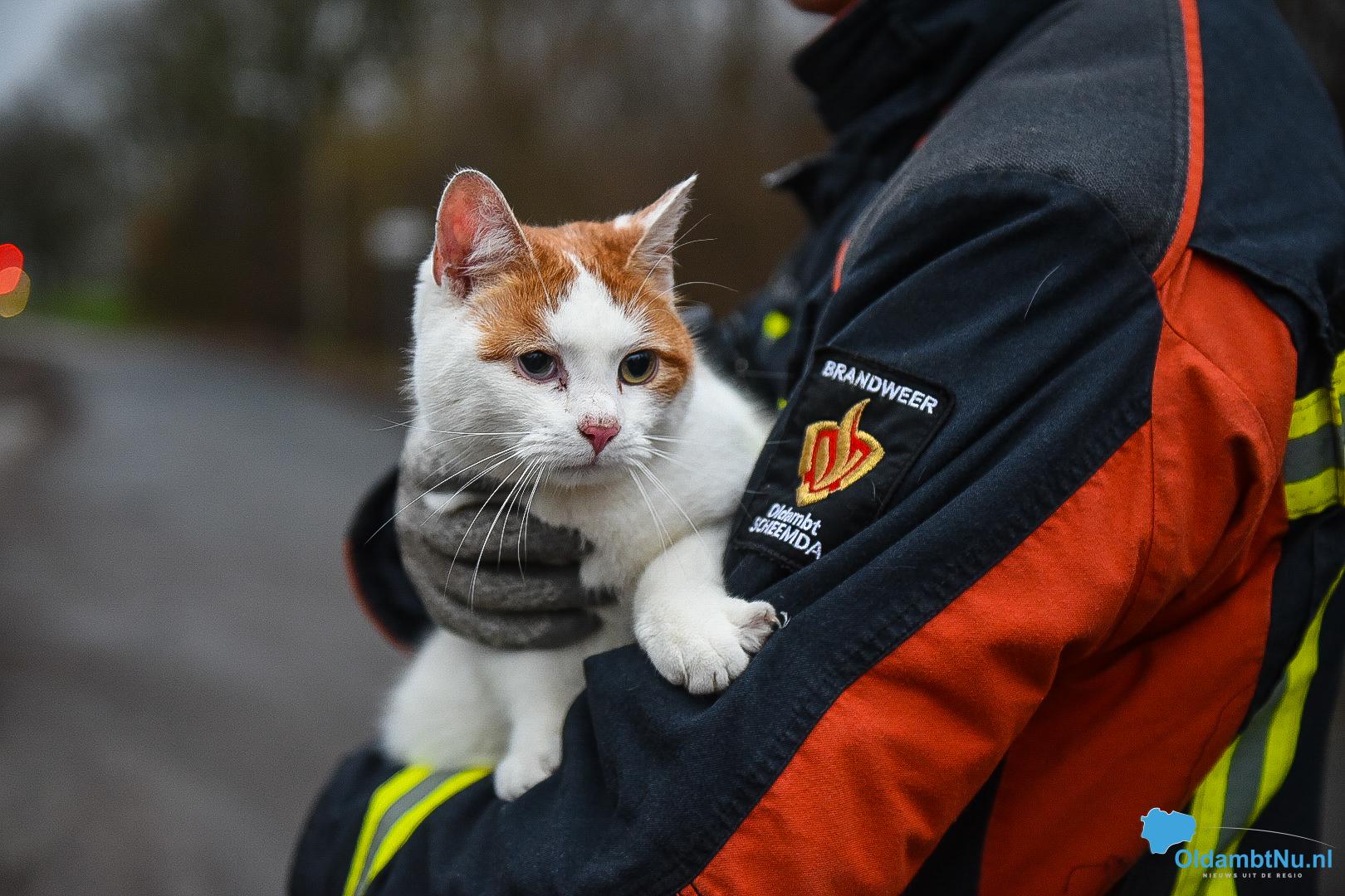 Scheemda – De brandweer van Scheemda en Winschoten hebben zondagmiddag een kat weten te redden uit een boom langs de Oude Rijksweg. Het huisdier zat zo’n drie dagen vast in de top van de boom.