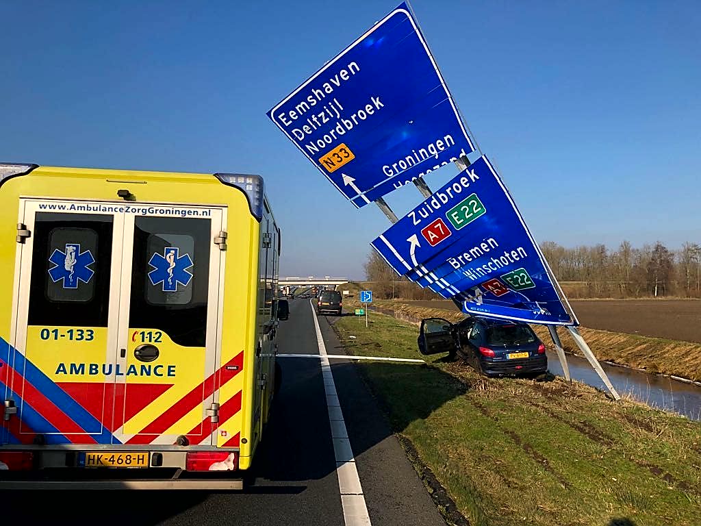 Auto ramt door ANWB-bord op de N33