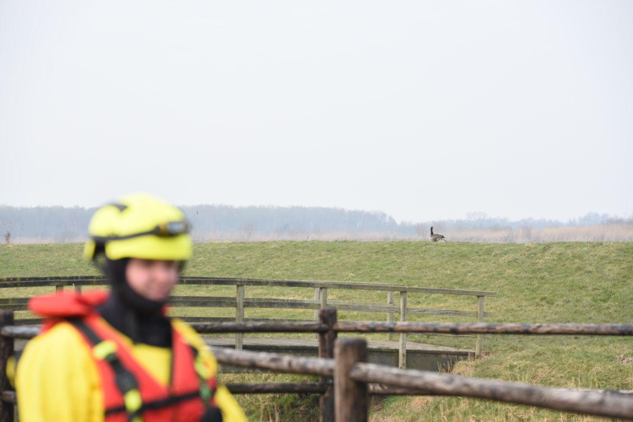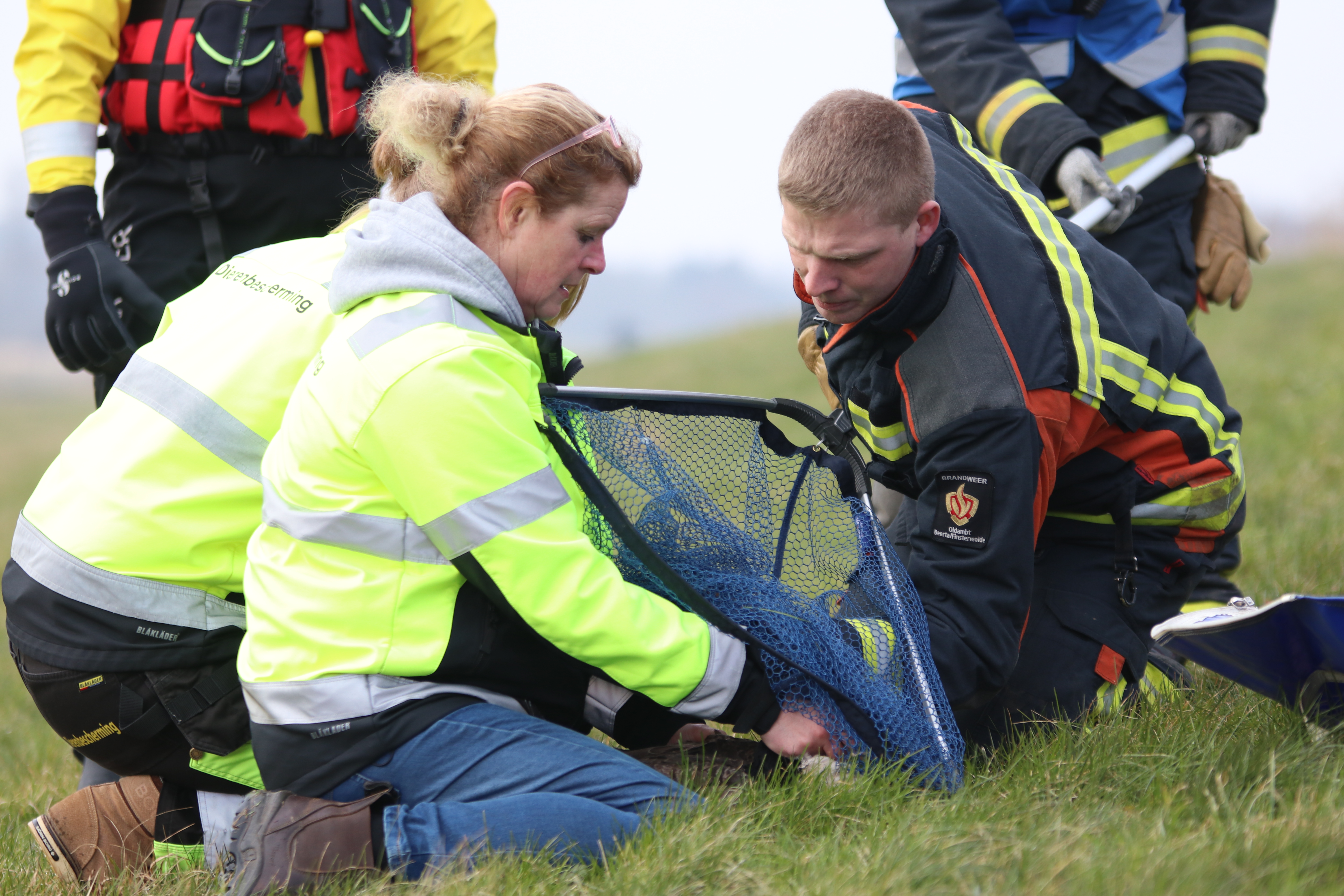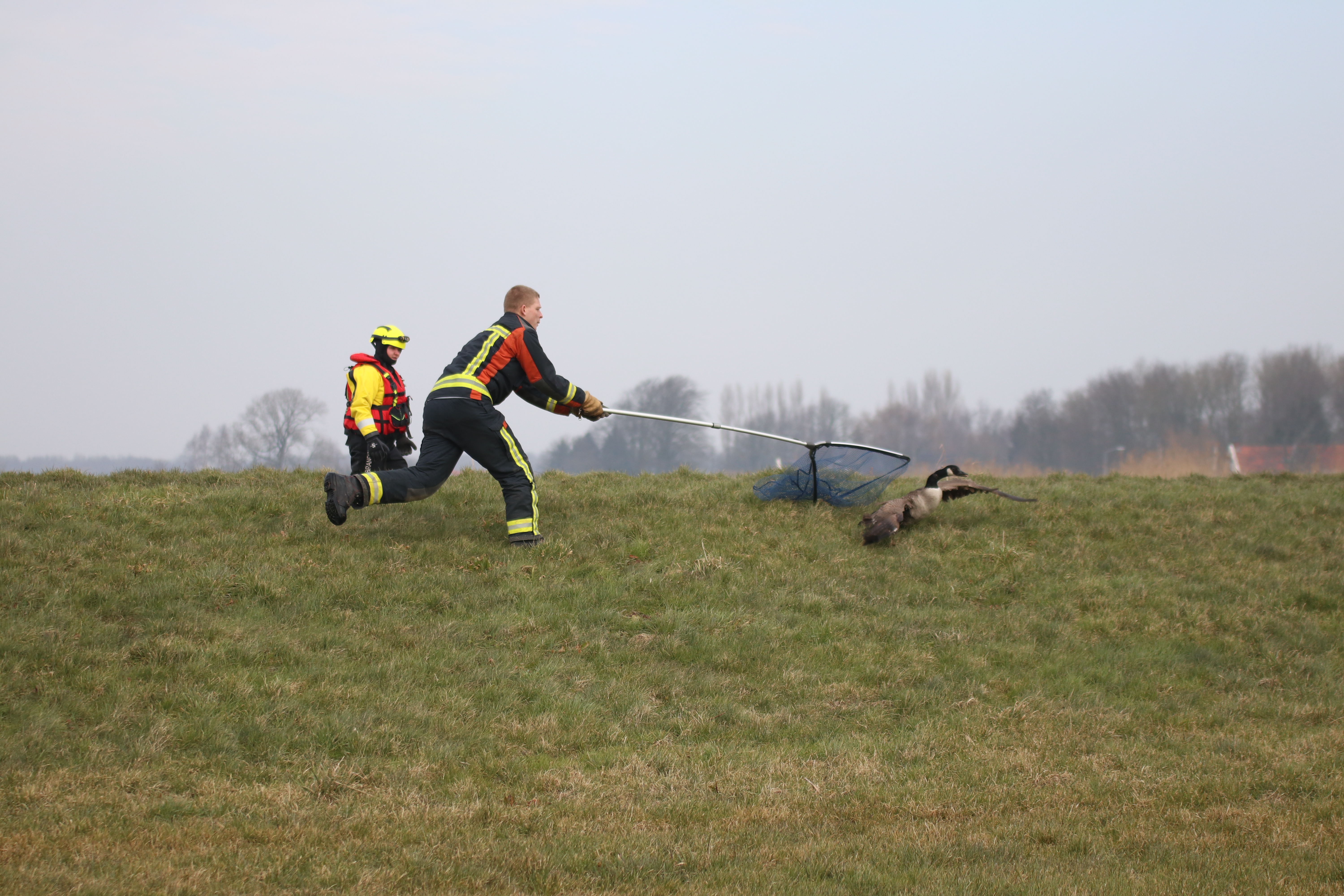 Terwijl de brandweer aanrijdend was kwam de gans de dijk opkruipen, hulp kwam voor hem dus te laat. De brandweer heeft het dier gevangen en overgedragen aan de dierenambulance die hem naar het dierenasiel heeft gebracht.