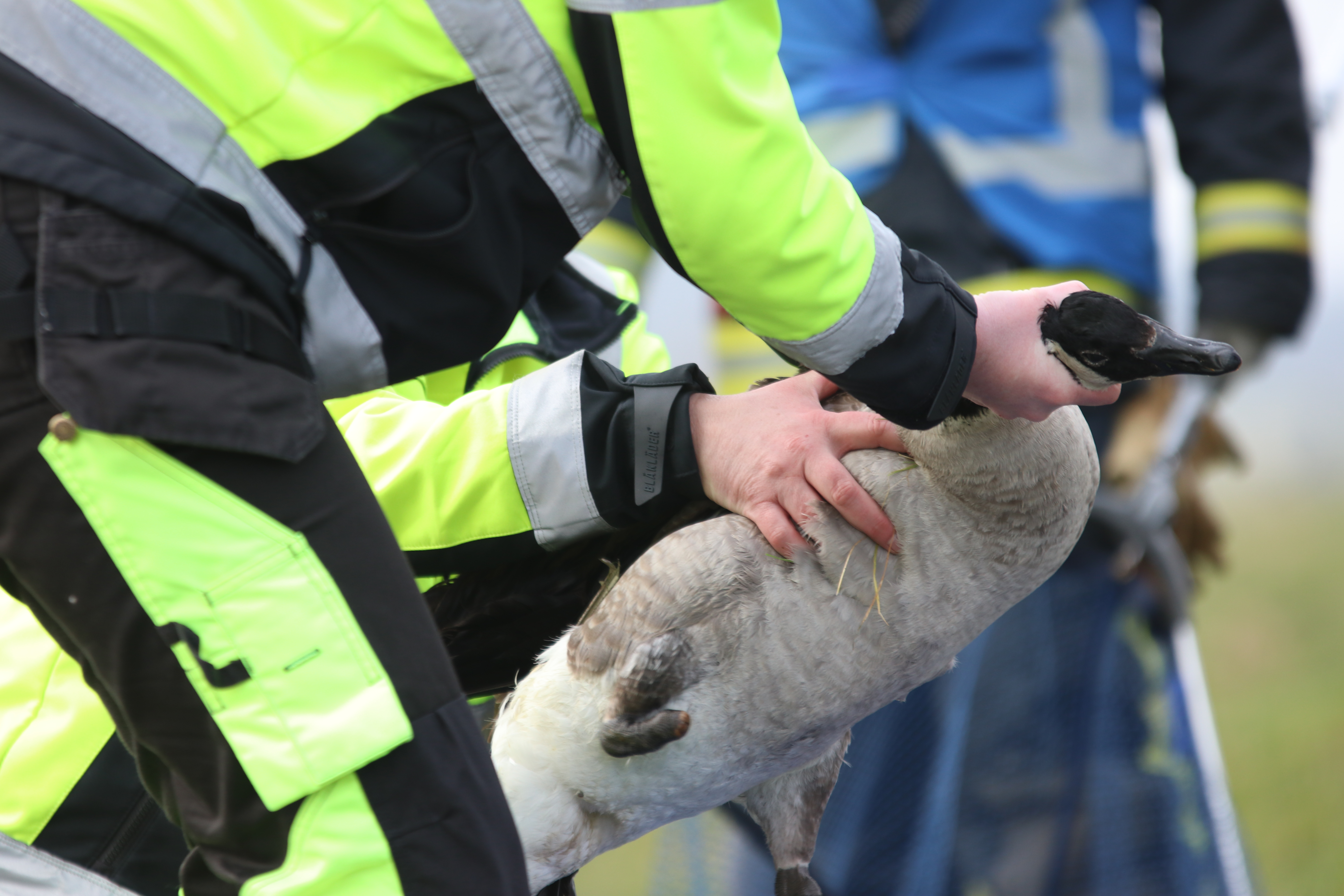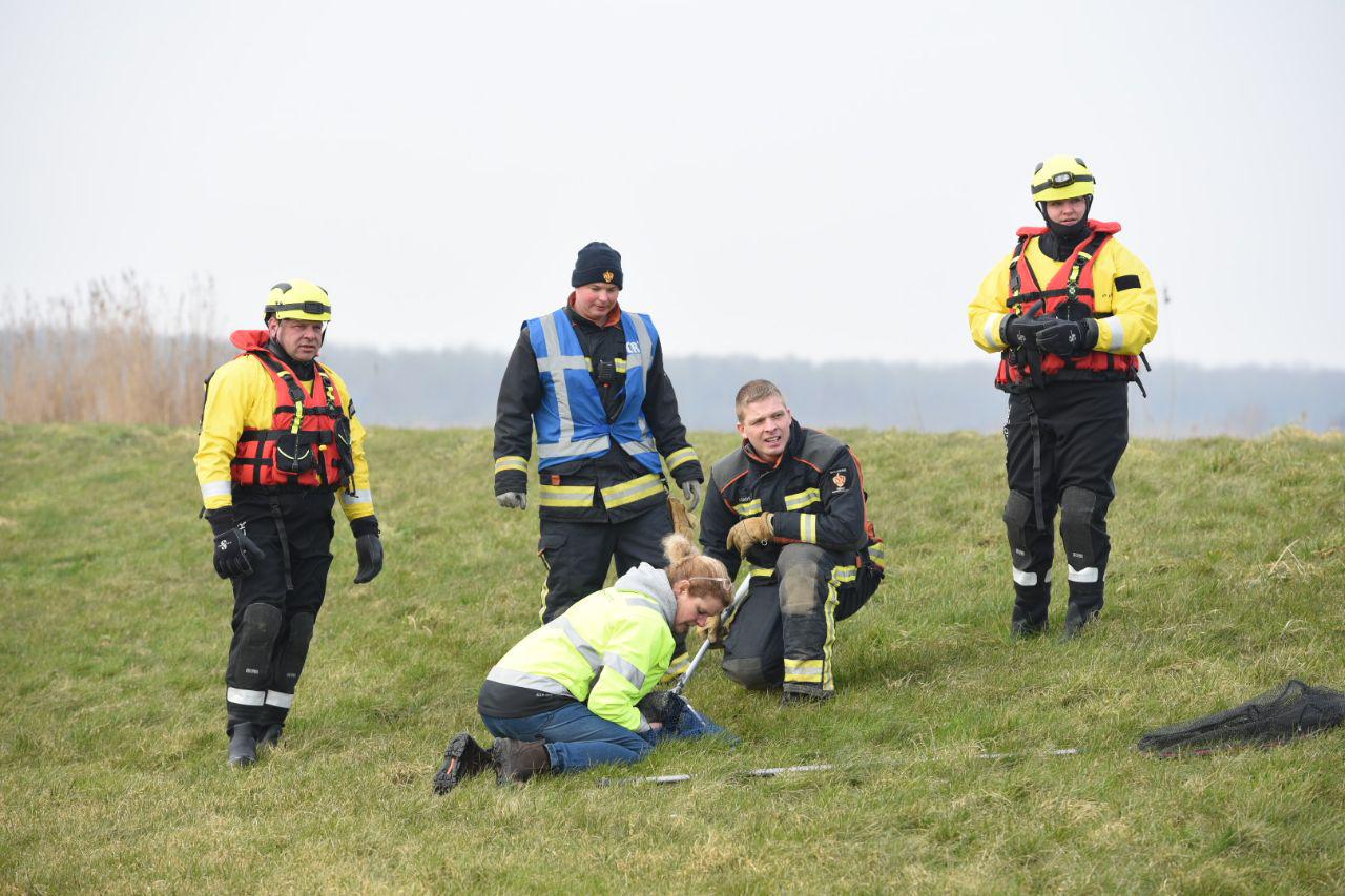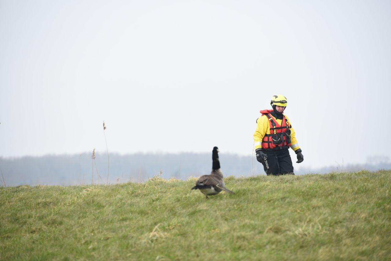 Terwijl de brandweer aanrijdend was kwam de gans de dijk opkruipen, hulp kwam voor hem dus te laat. De brandweer heeft het dier gevangen en overgedragen aan de dierenambulance die hem naar het dierenasiel heeft gebracht.