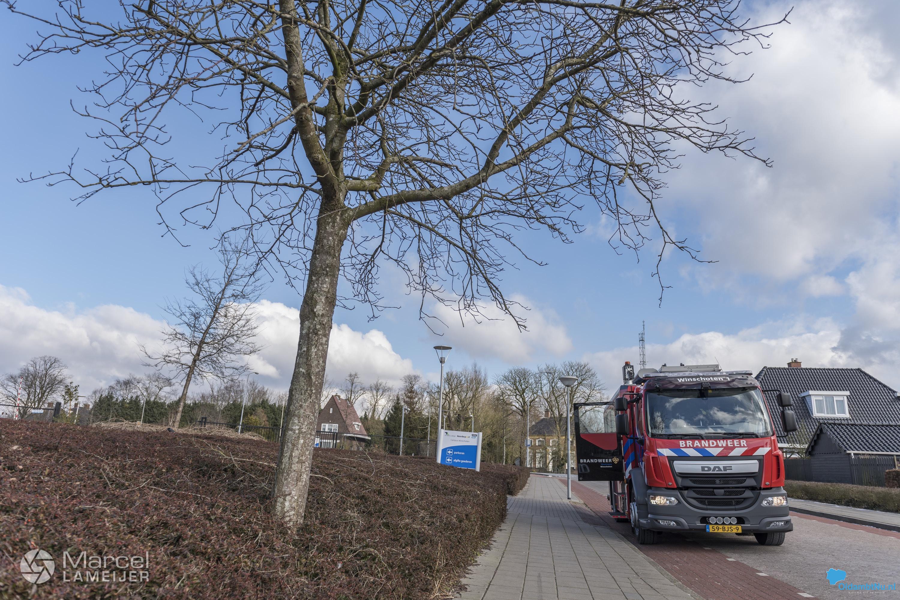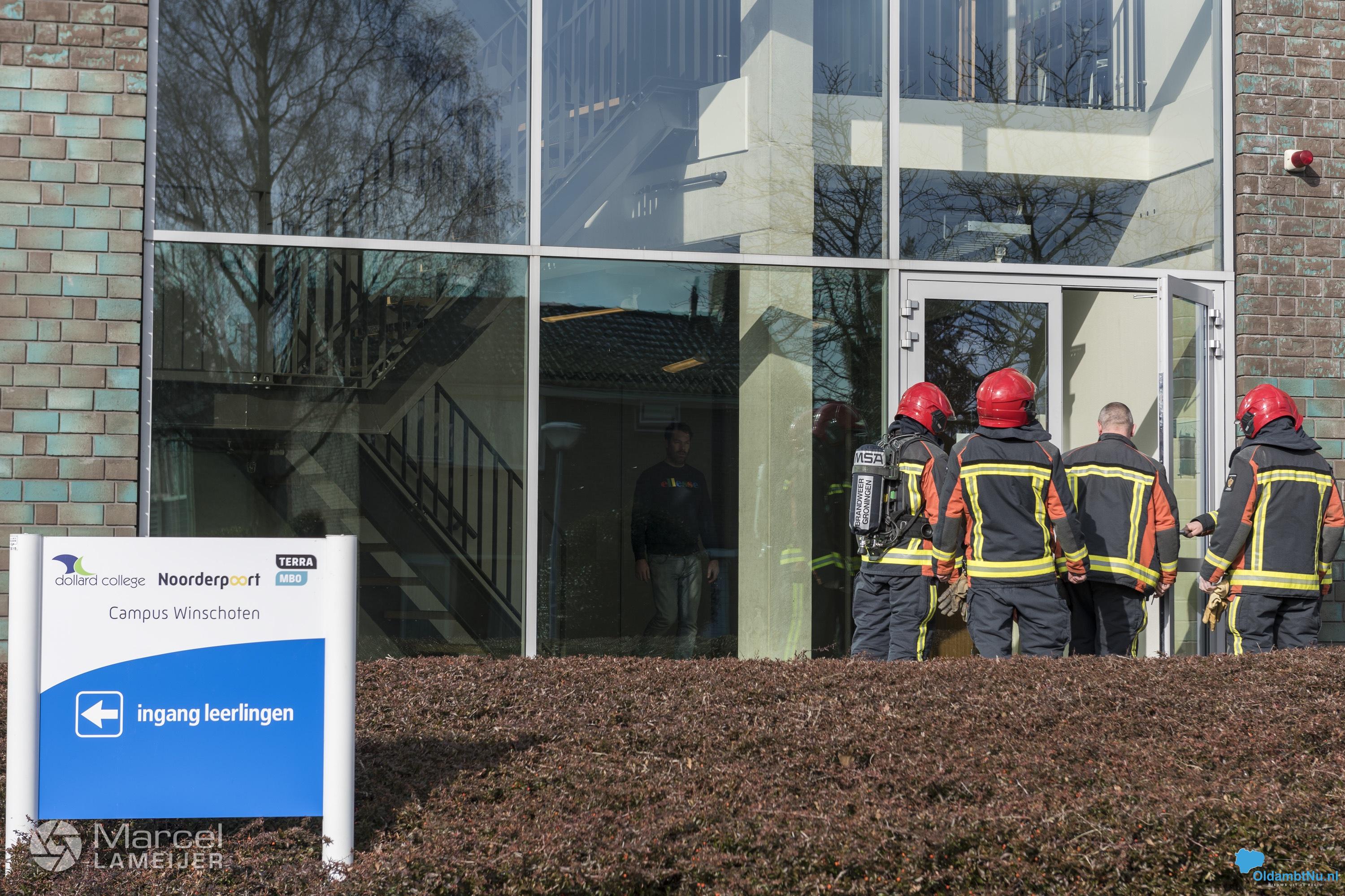 Brandweer rukt uit voor brandmelding bij Campus Winschoten
