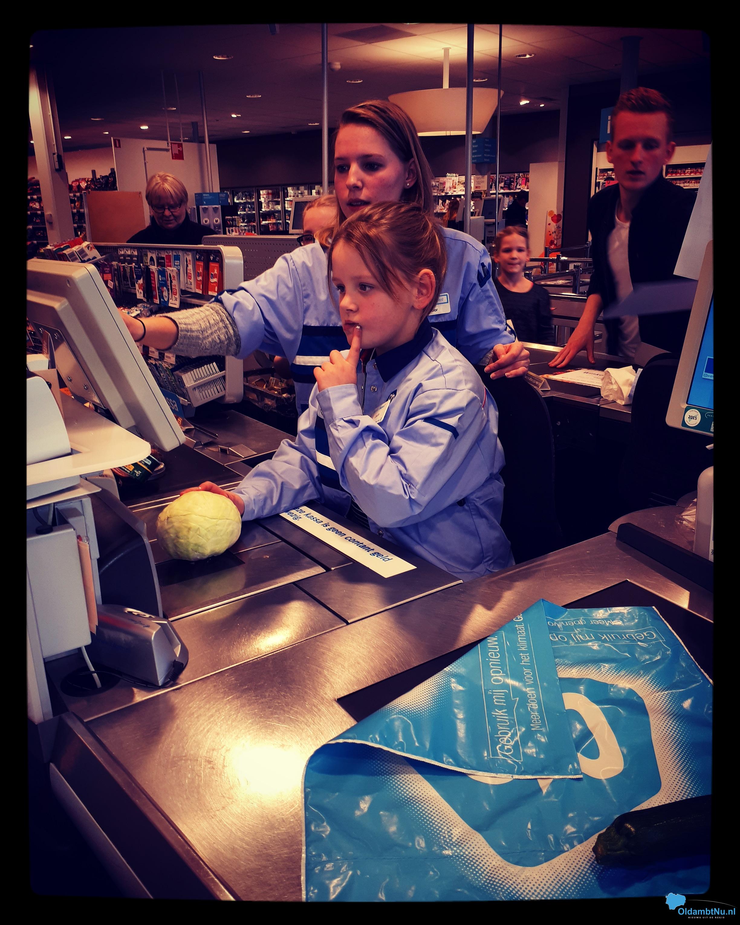 Ze kregen een heus Albert Heijn jasje aan en een naambordje met hun eigen naam. De ouders konden ondertussen mooi hun boodschappen doen waarna deze bij hun eigen kind afgerekend konden worden. Na afloop kregen de kinderen een winkeldiploma.