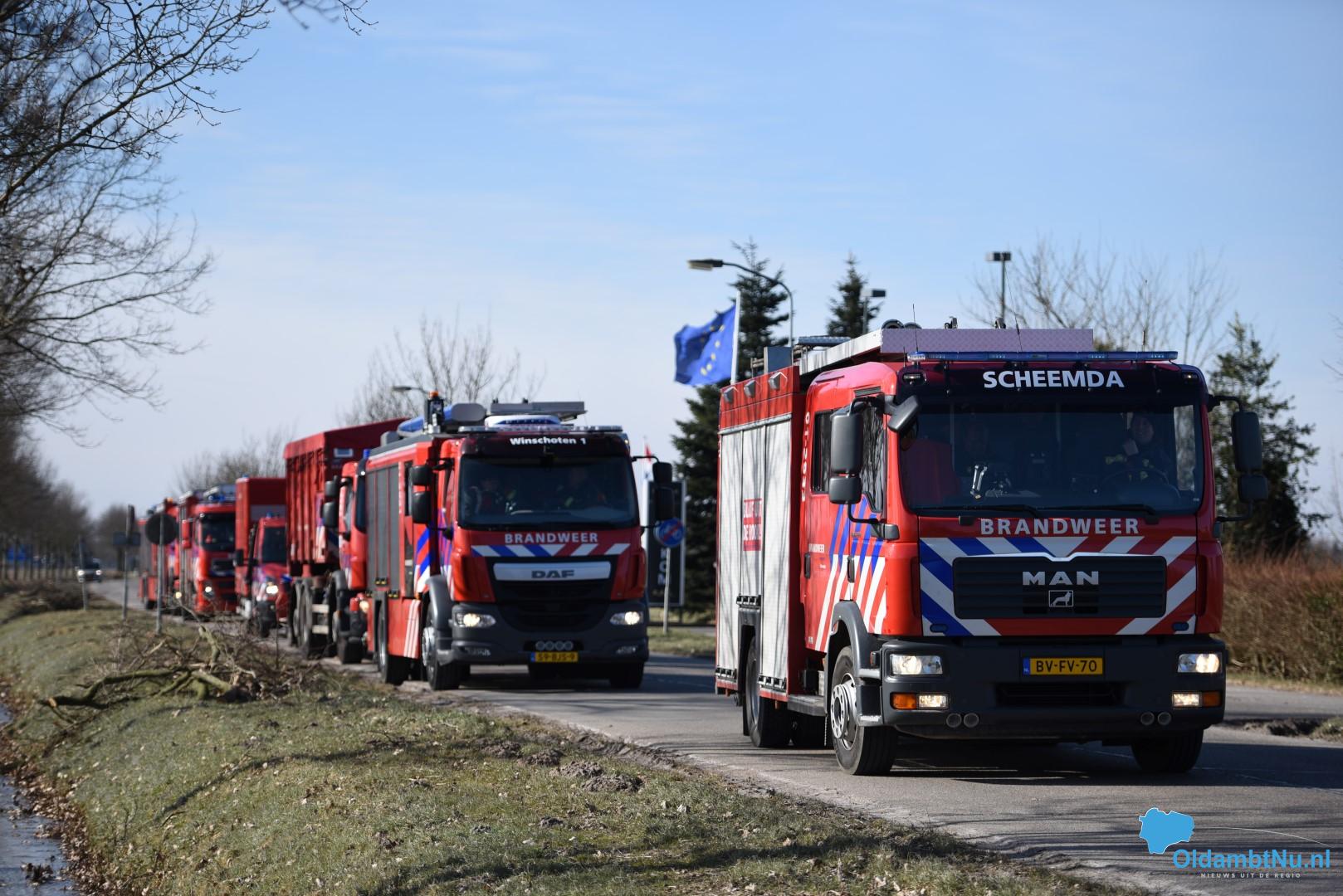 Om 12:20 werd er een pelotonsalarm uitgeven, hierbij werden onder andere de korpsen van de brandweer Oldambt ook gealarmeerd. De brandweer Winschoten, Scheemda en Finsterwolde zijn met de tankautospuiten uitgerukt.
