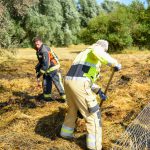Rijkswaterstaat zal een aannemer inschakelen om het gedroogde gras weg te halen om opnieuw brand te voorkomen.