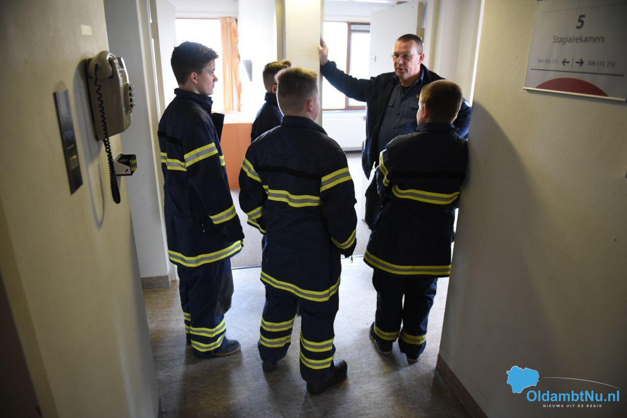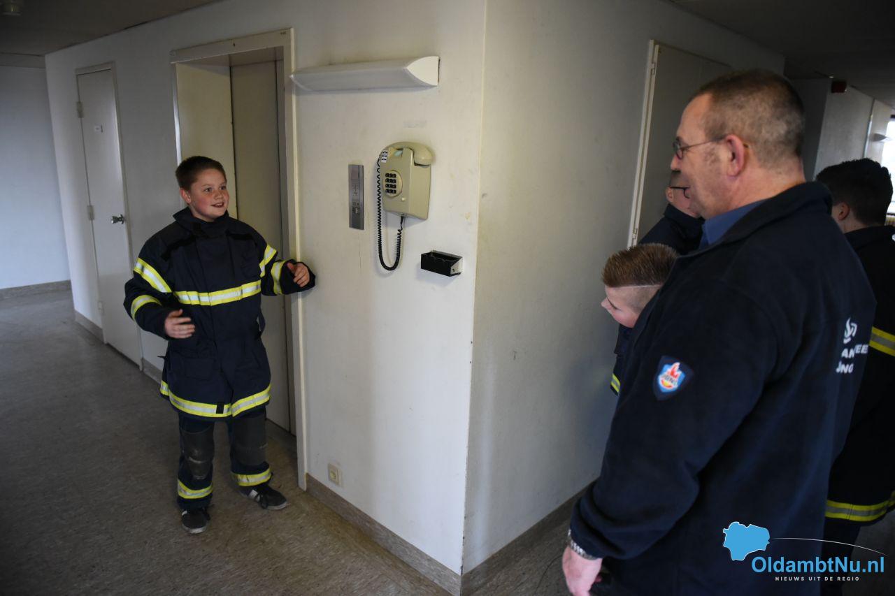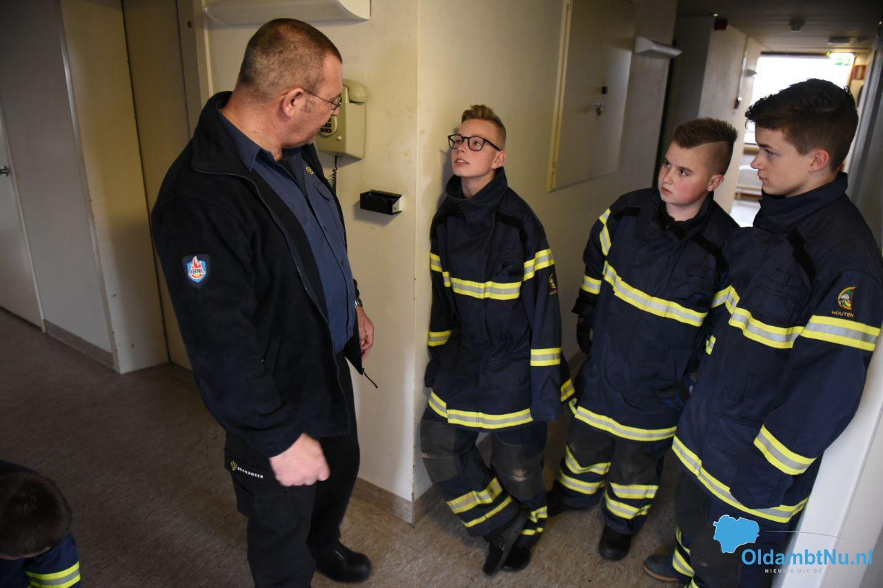 De leden van de jeugdbrandweer hebben in de flat de deurprocedure geoefend. Buiten het pand werd geoefend hoe je veilig een ladder moet plaatsen en deze te beklimmen en vervolgens weer op te ruimen.