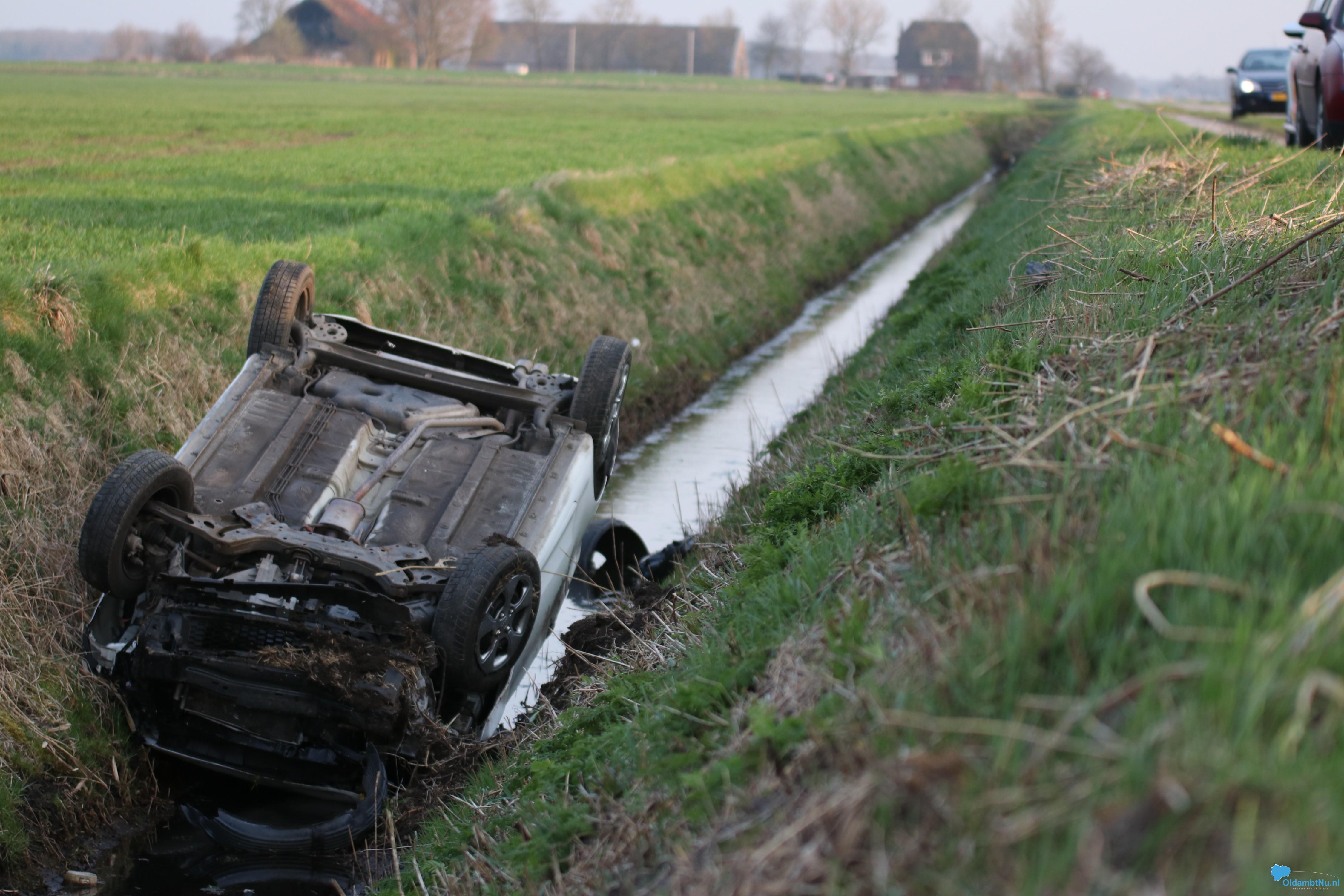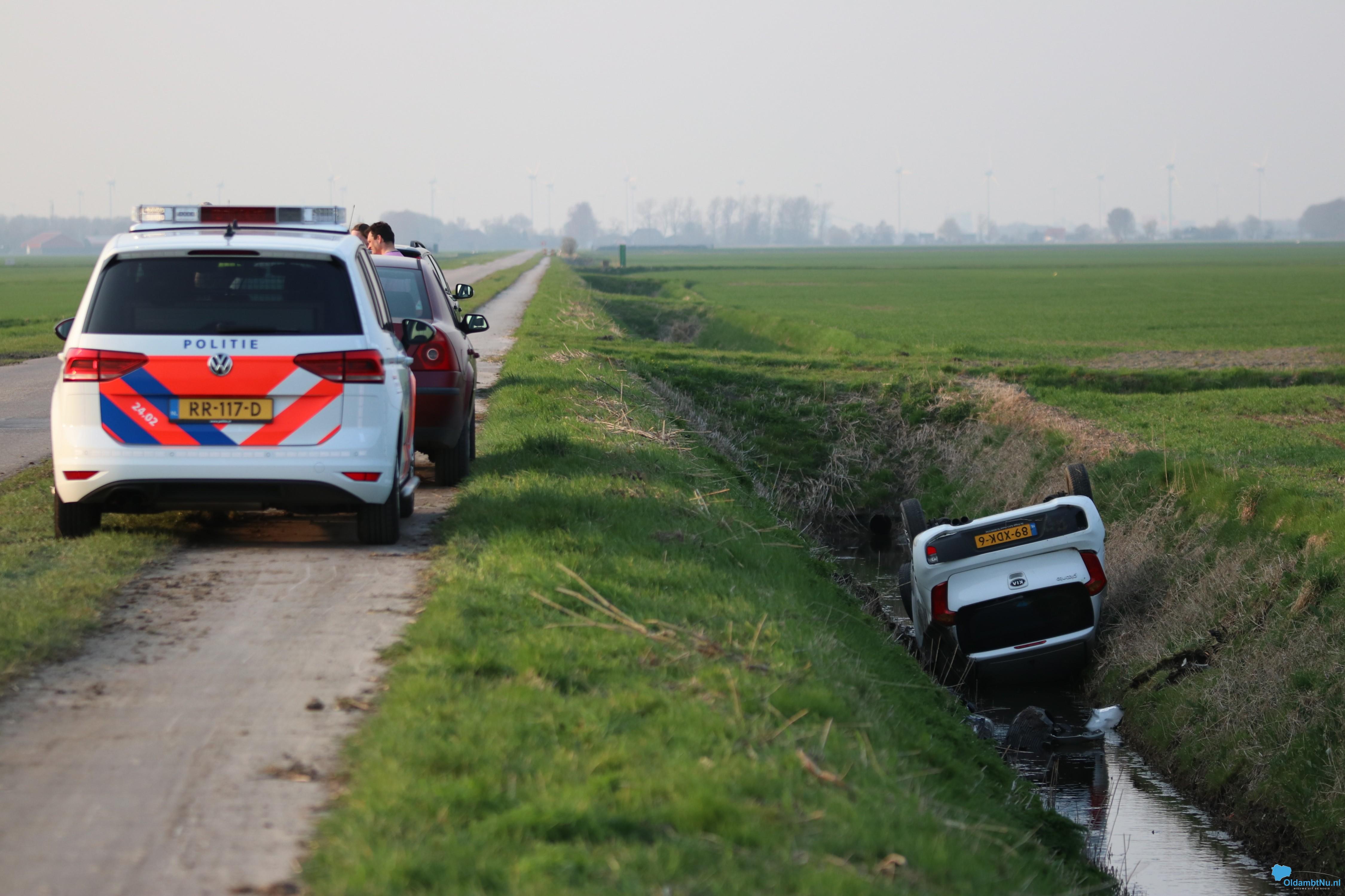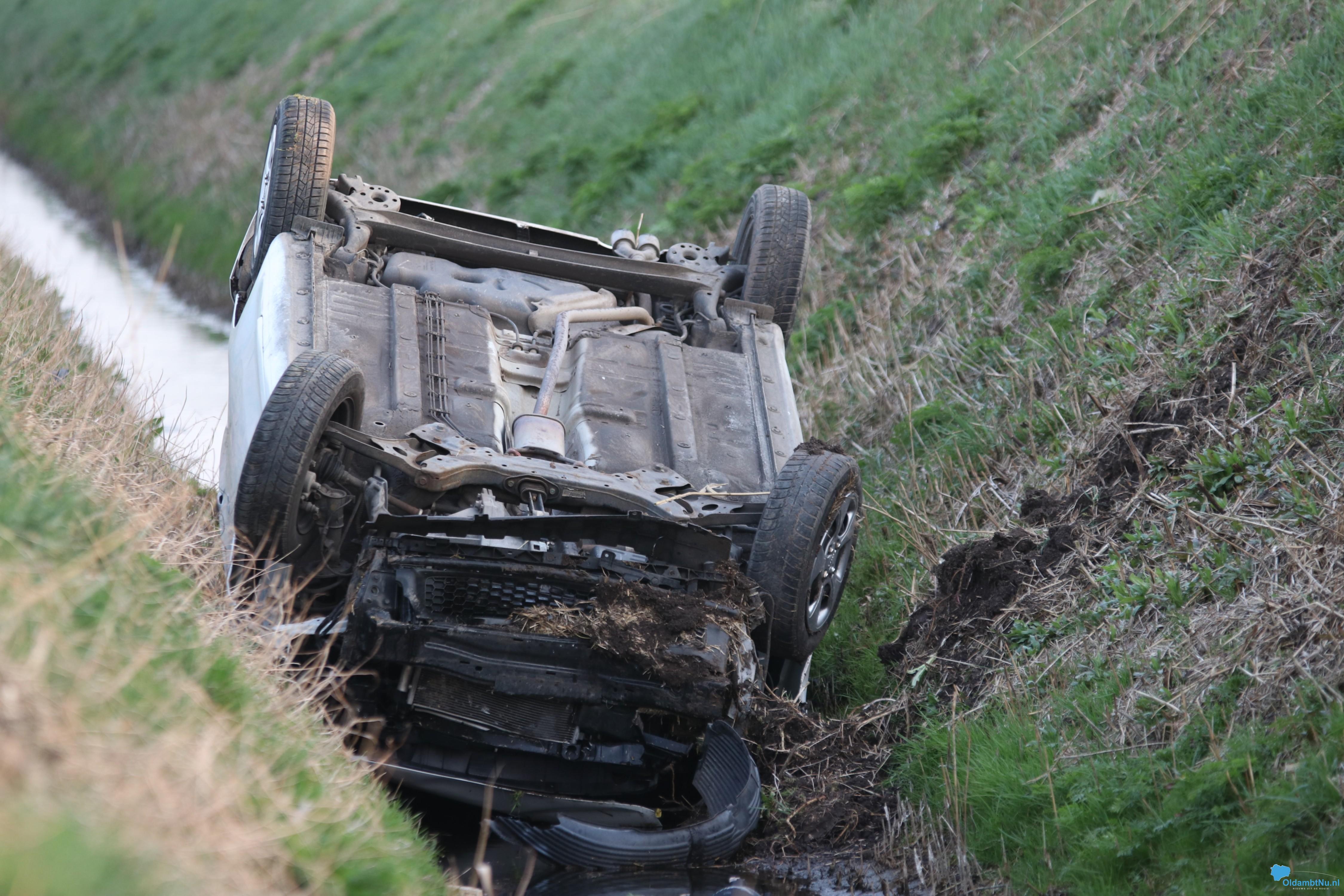 De bestuurder is vermoedelijk de macht over het stuur kwijt geraakt, en is vervolgens na een slip op de kop in de sloot belandt. Over eventuele gewonden is niks bekend. Berger Fruitema uit Oude Pekela heeft de auto geborgen.