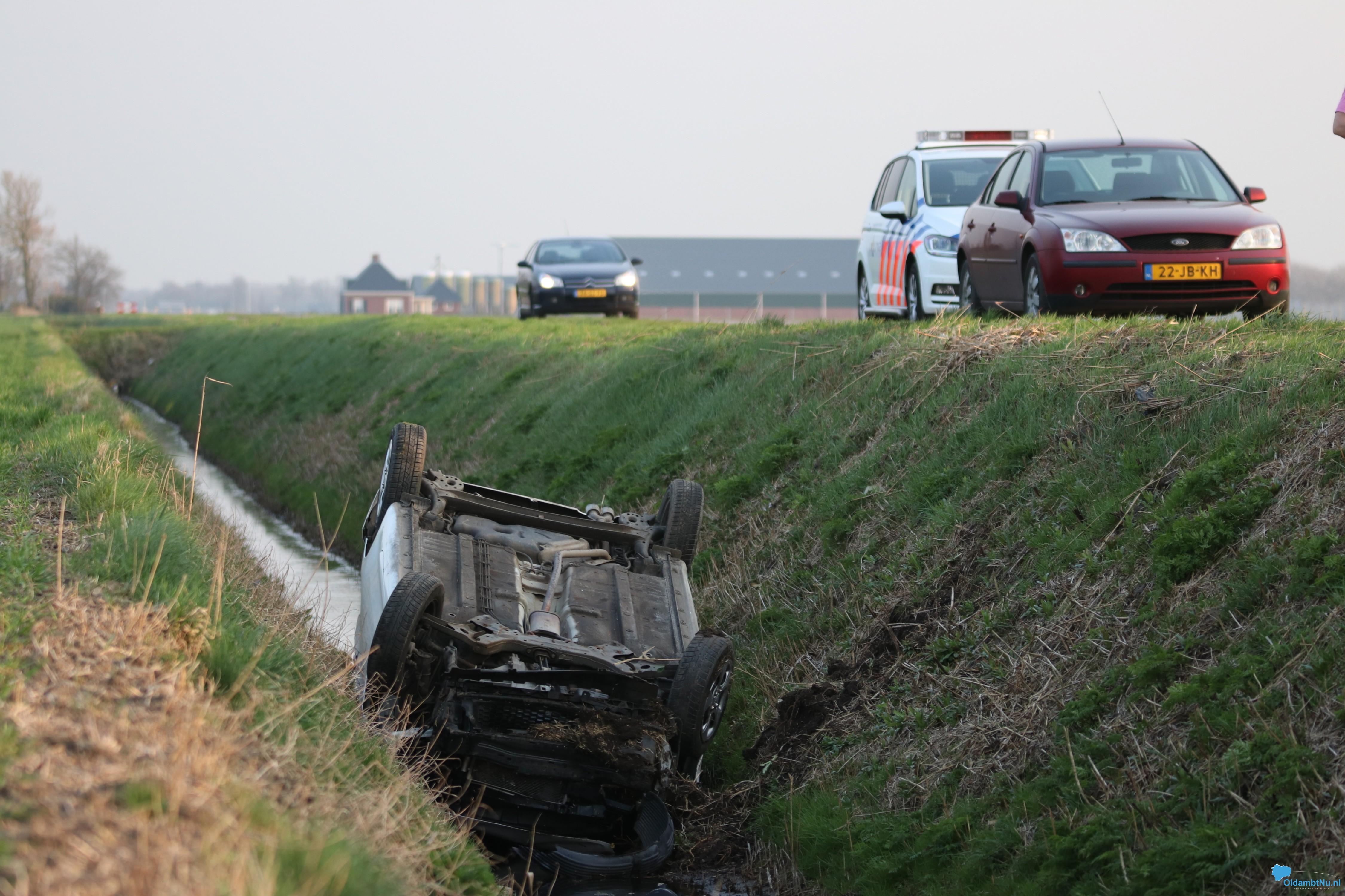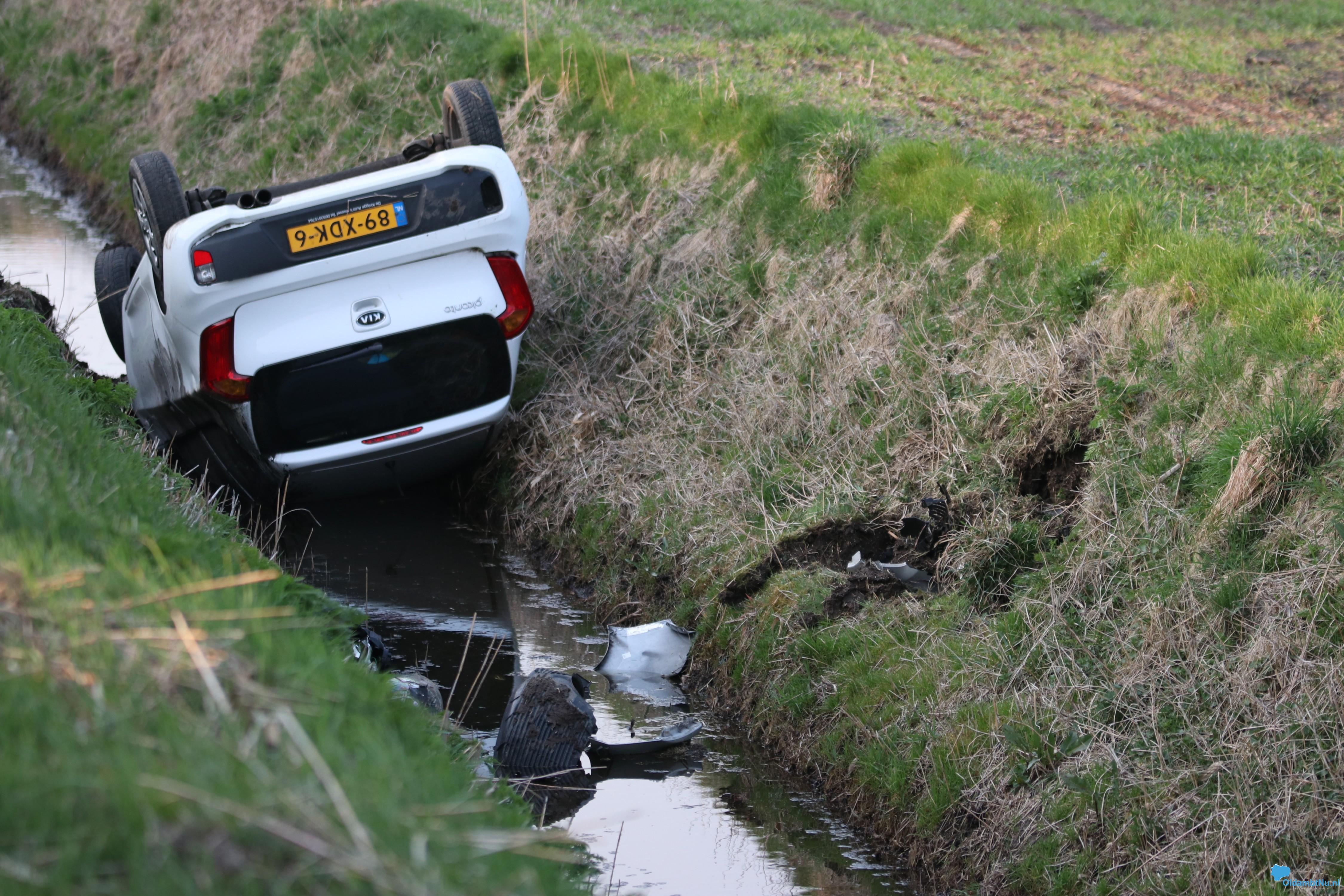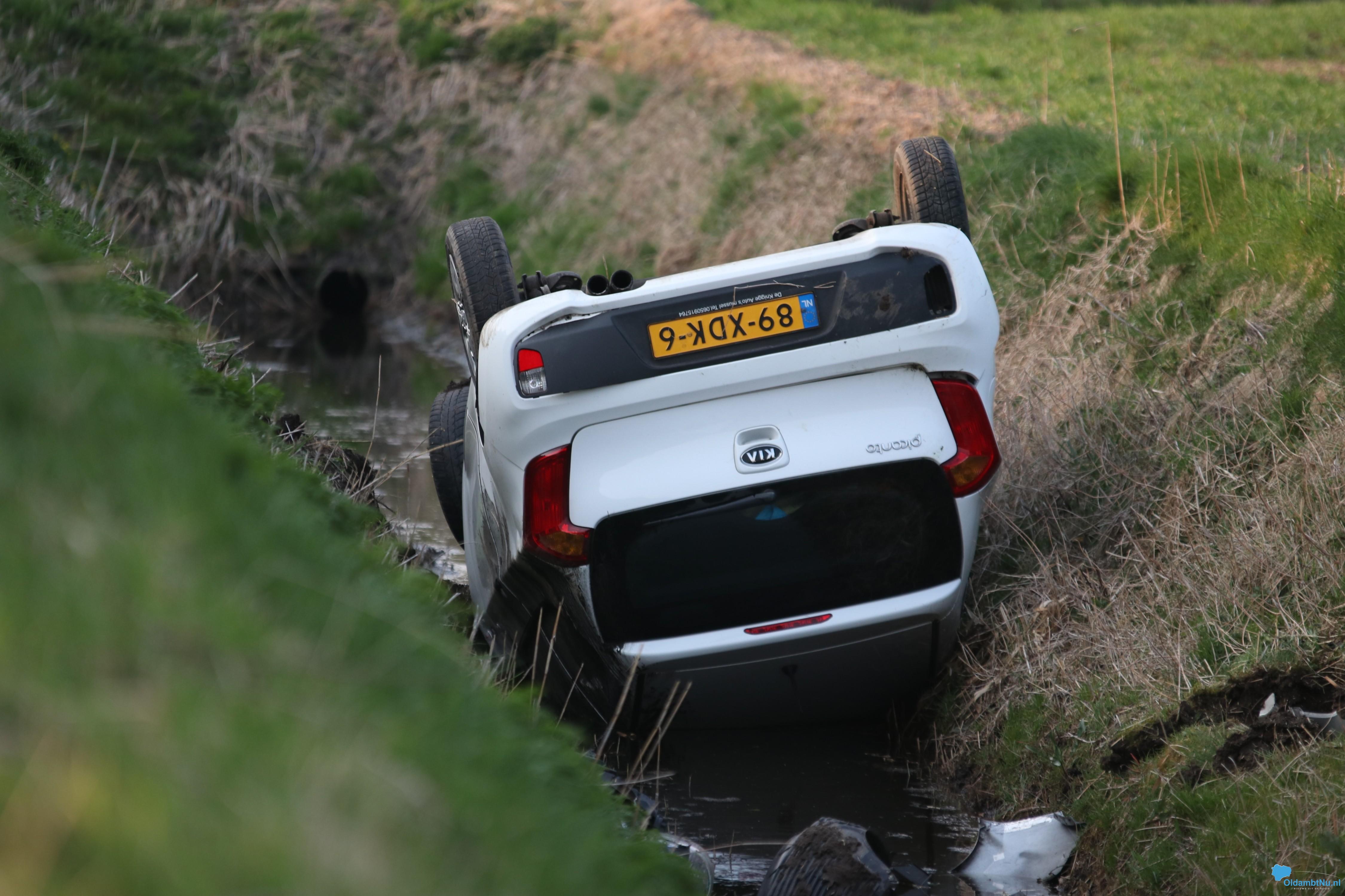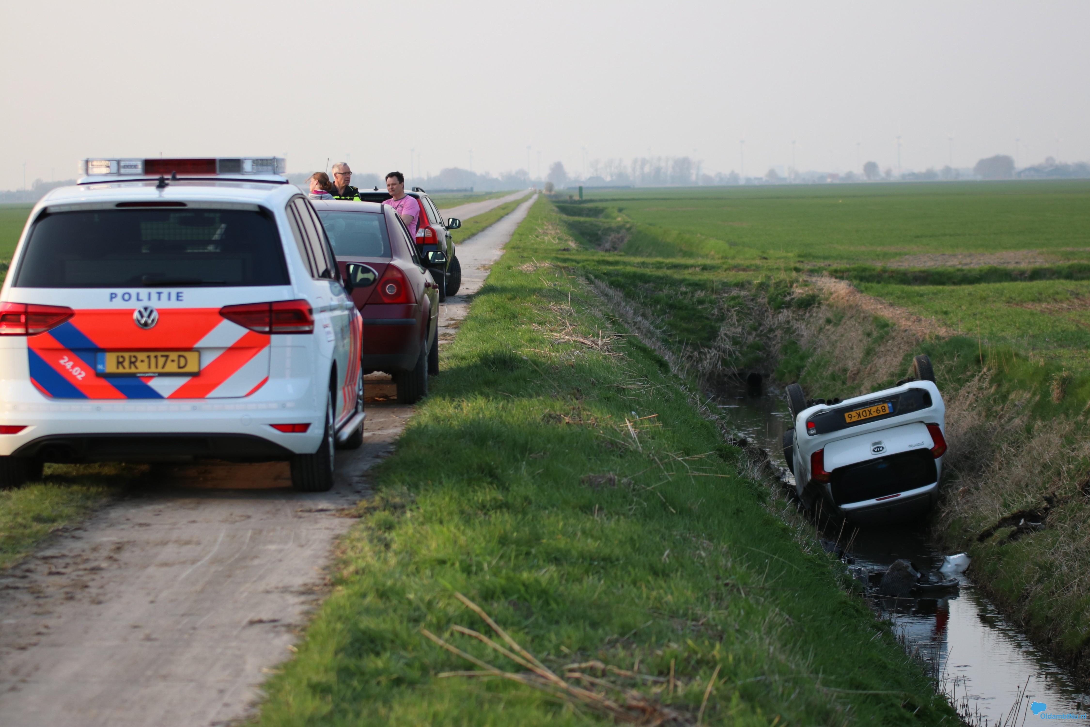 De bestuurder is vermoedelijk de macht over het stuur kwijt geraakt, en is vervolgens na een slip op de kop in de sloot belandt. Over eventuele gewonden is niks bekend. Berger Fruitema uit Oude Pekela heeft de auto geborgen.