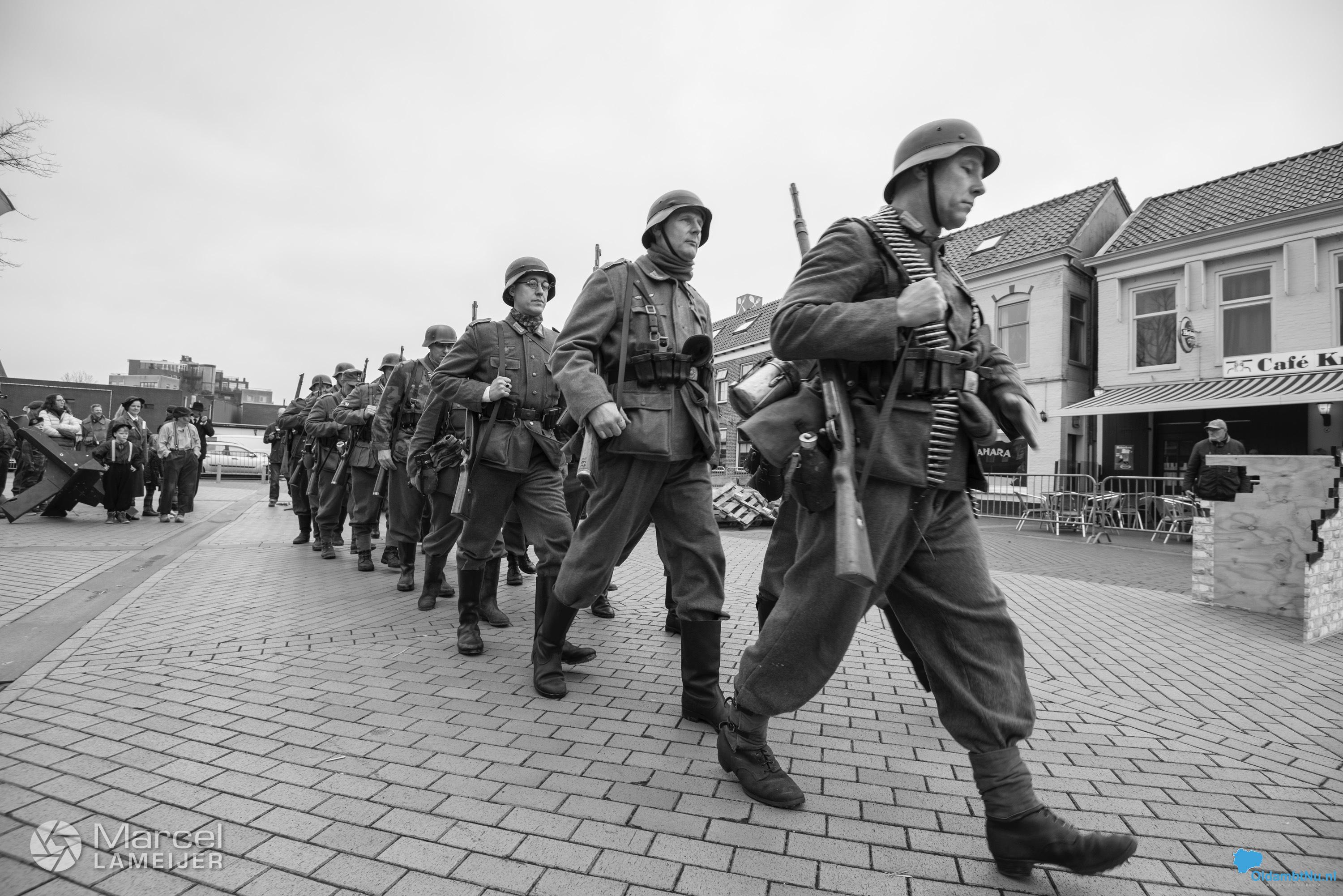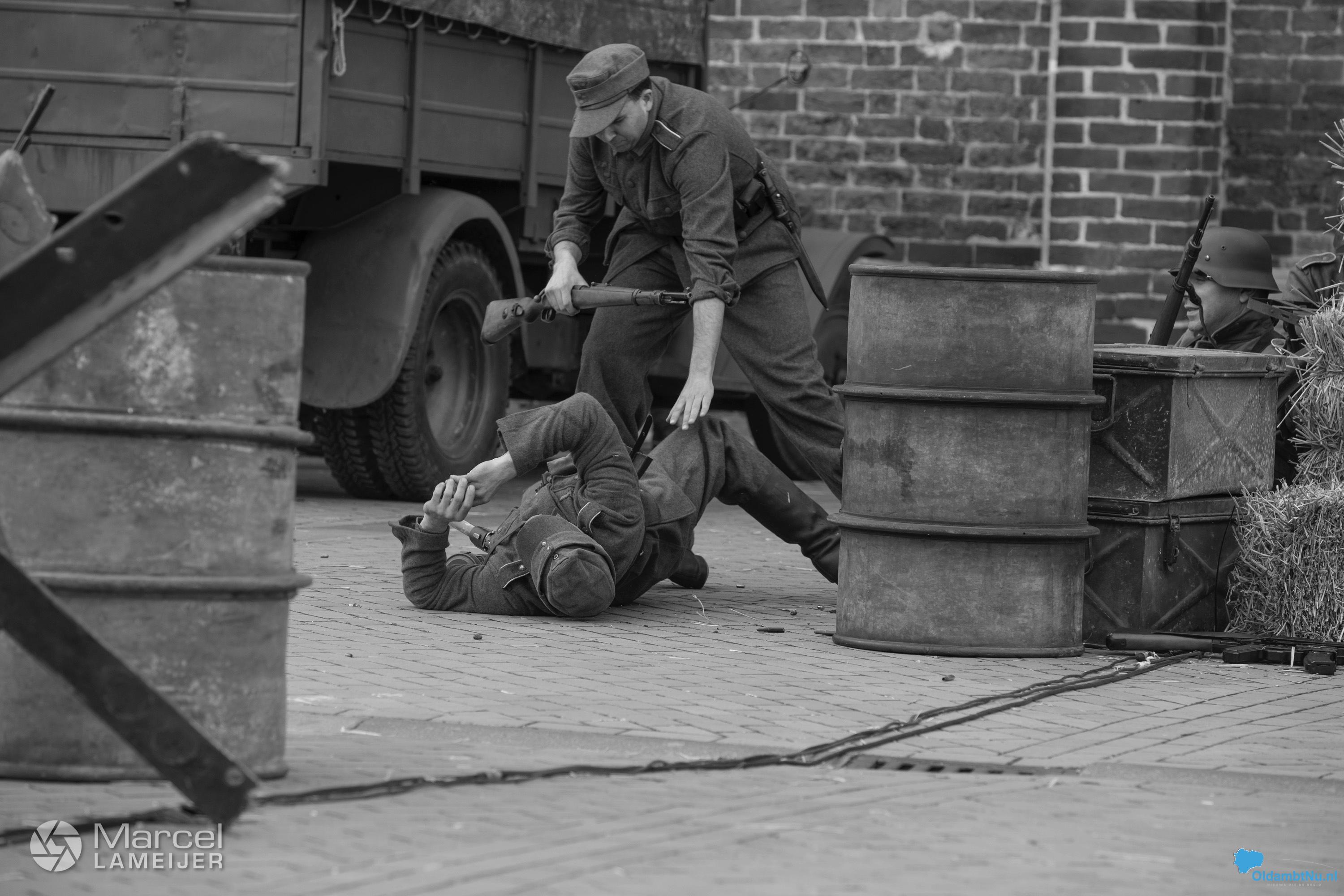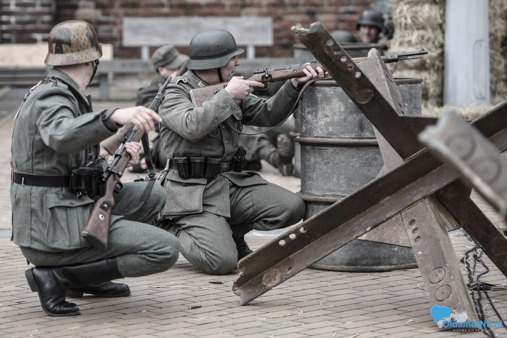 Het Marktplein stond bol van de re-enactment. Om en nabij 30 geallieerde re-enacters en 30 Duitse re-enacters waren aanwezig met displays welke de gehele dag bezocht konden worden door bezoekers. Daarnaast werd er een tweetal re-enactments gespeeld waarbij de bevrijding van Winschoten gedeeltelijk na werd gespeeld. Deze zogeheten ‘mock battles’ waren spektakel voor jong en oud.