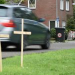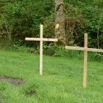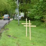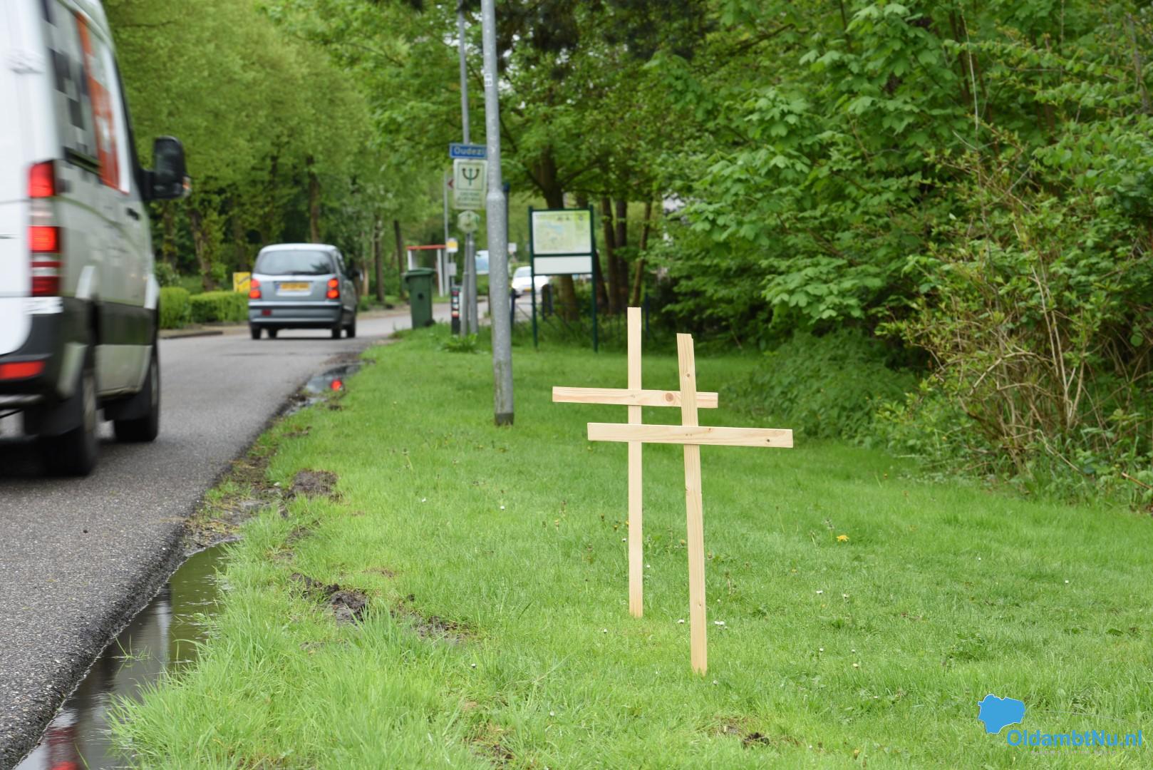 Luguber tafereeltje: onbekende zet twee houten kruisen in berm