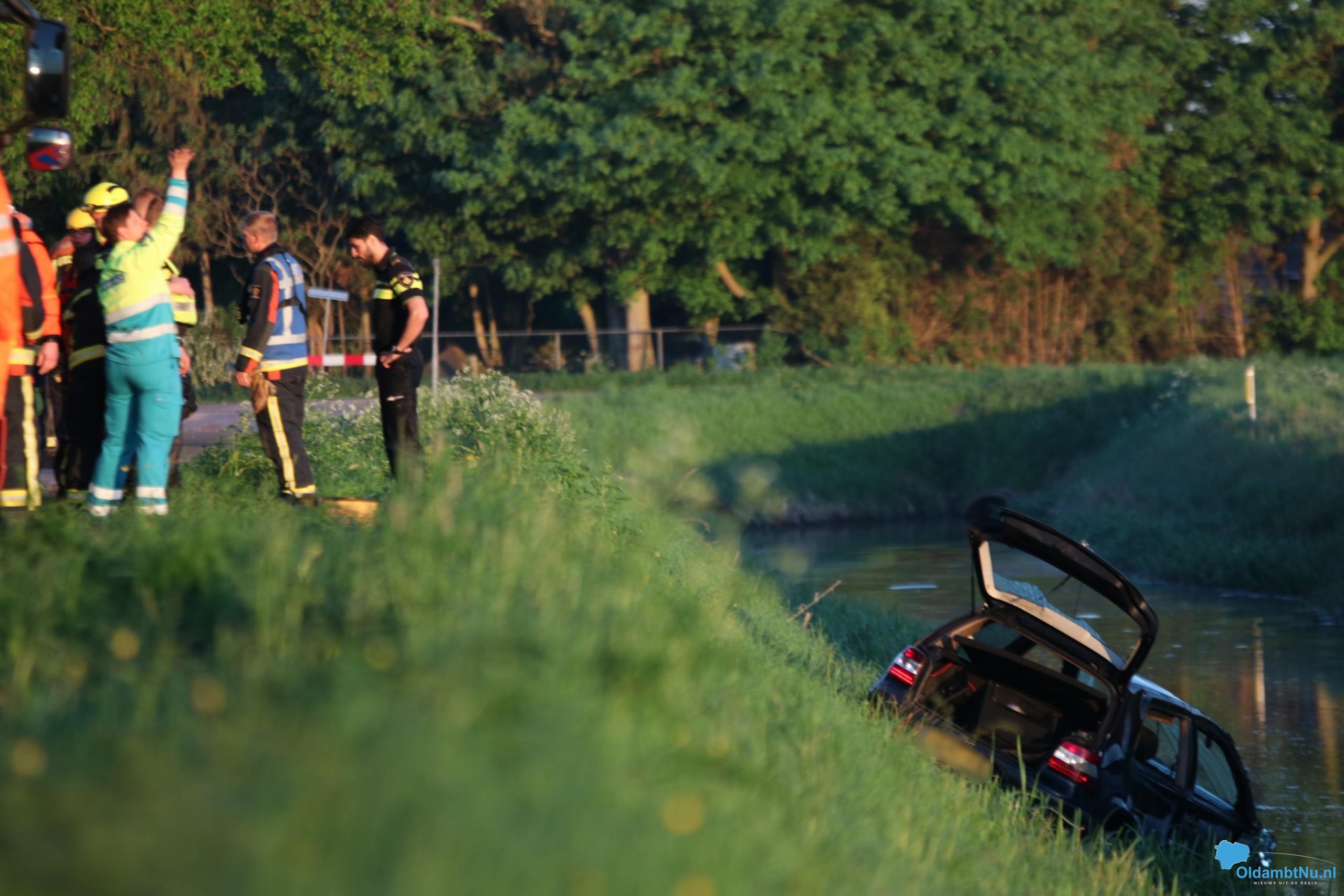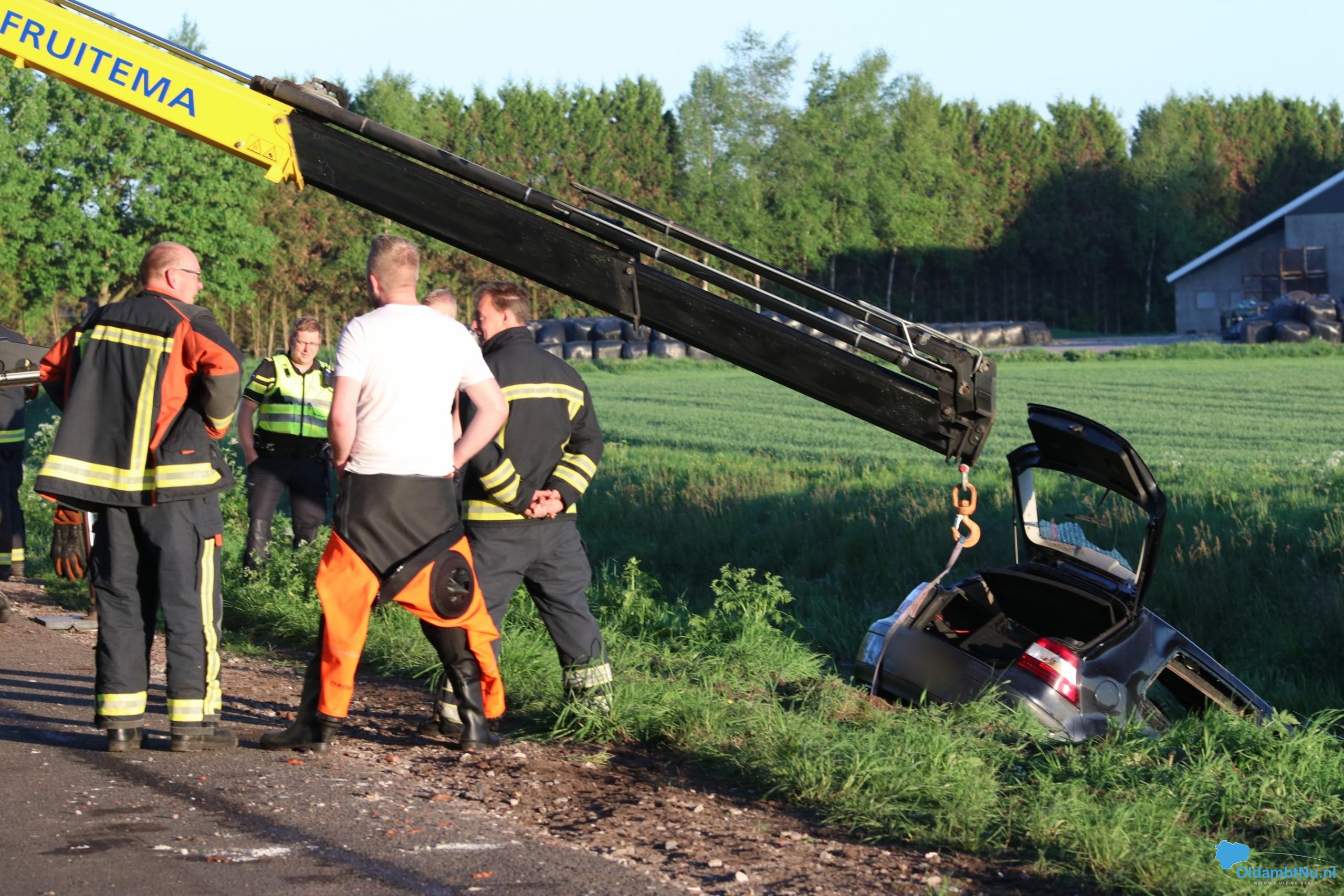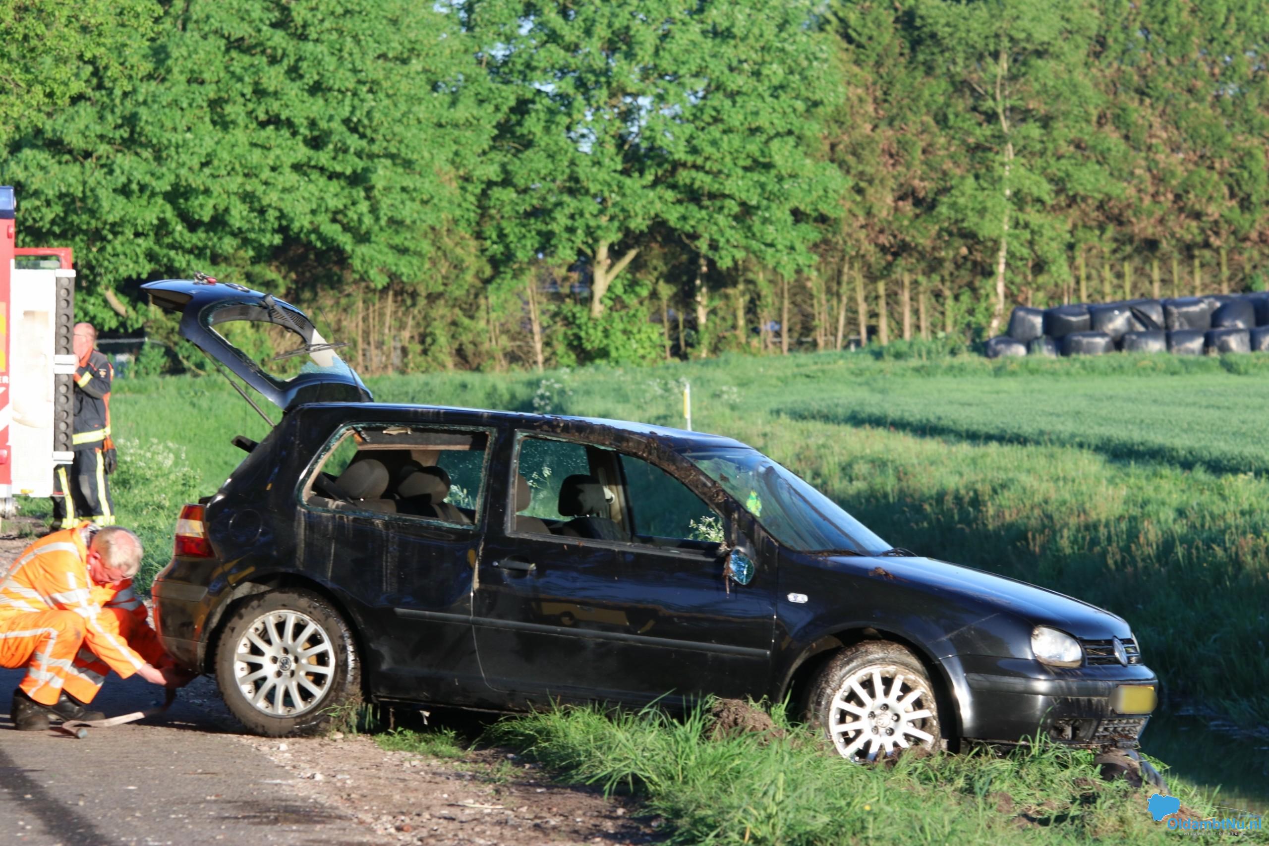 Een zwarte auto lag op de kop in het water, een boer heeft deze ontdekt. De brandweer heeft in samenwerking met de boer de auto omgetrokken, zij troffen niemand aan in het voertuig of in het water.
