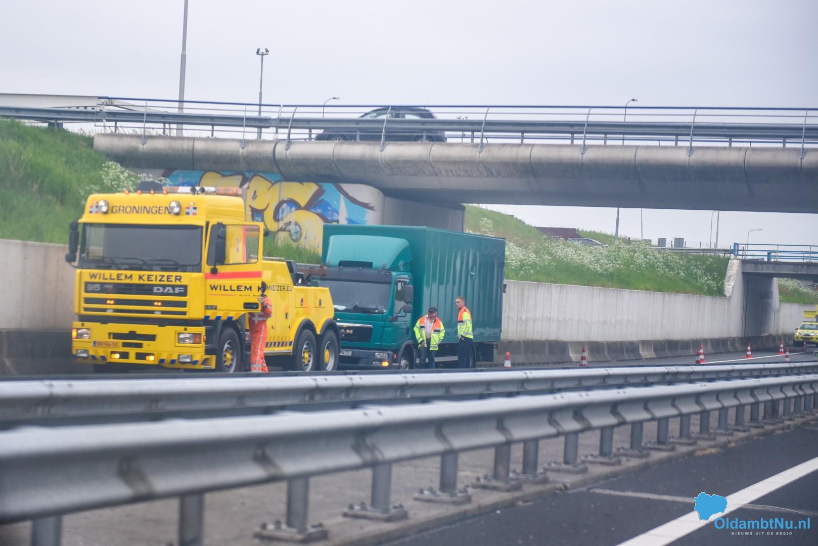 Vrachtwagen krijgt pech op levensgevaarlijke plek