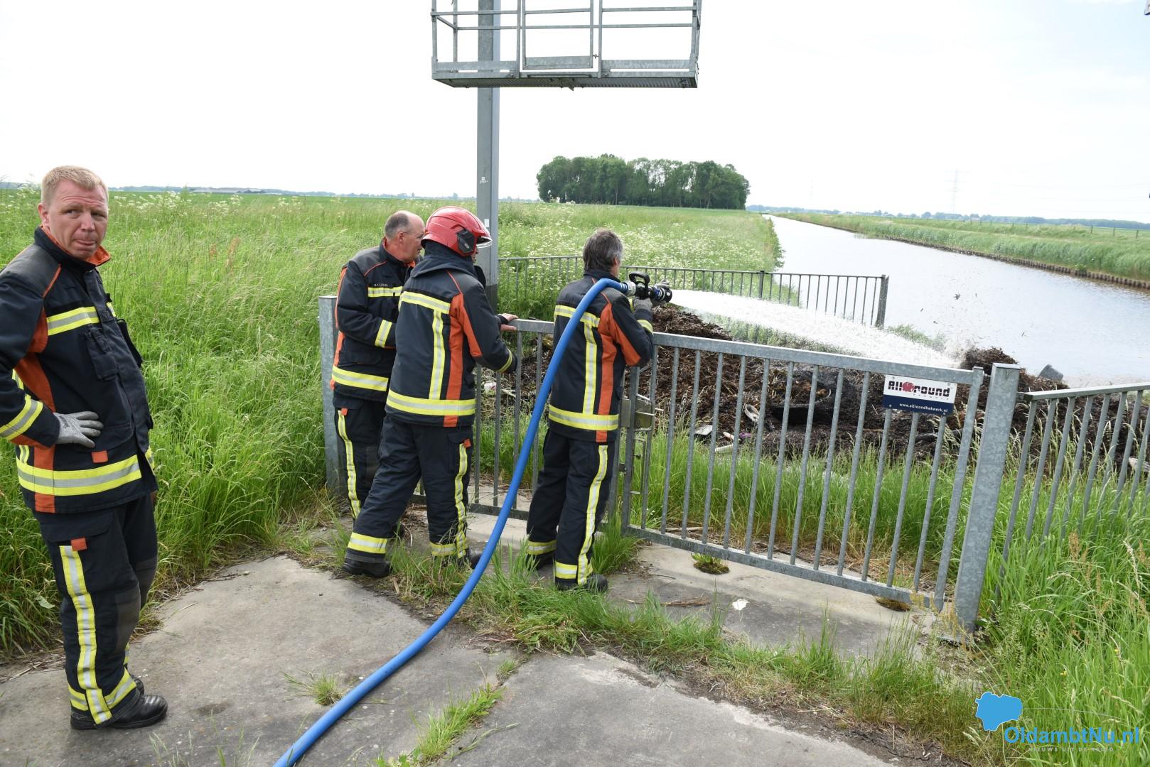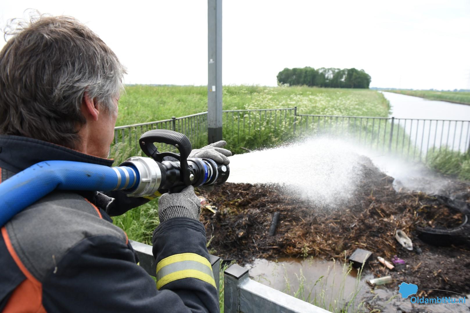 Ter plekke was er broei ontstaan in een bult afval wat de krooshekreiniger uit het water haalt. De brandweer heeft het vuur weten te bestrijden met water.