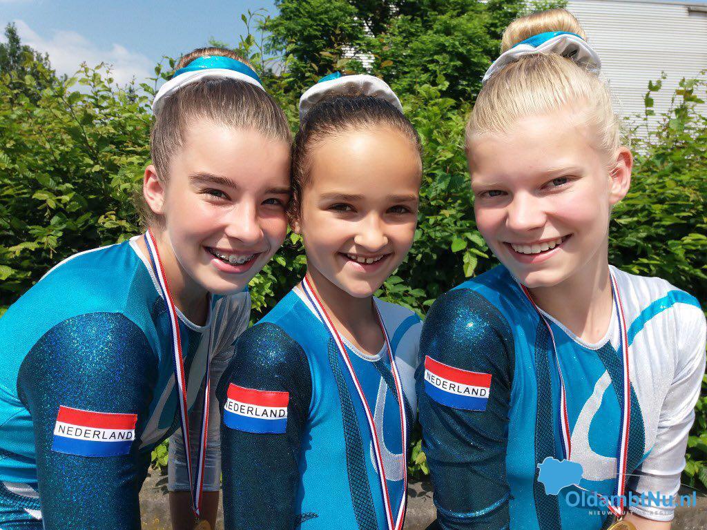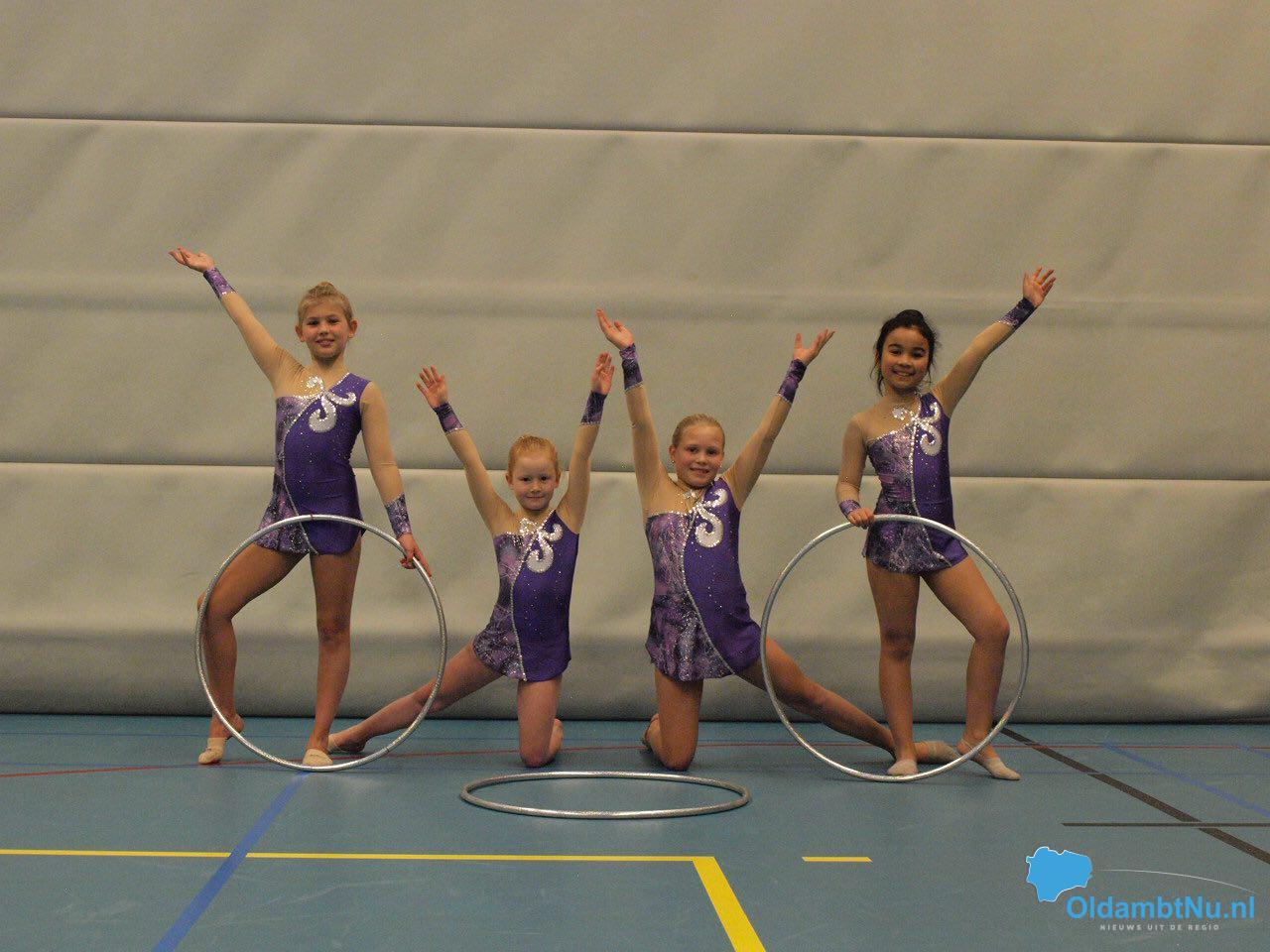 De jongere meisjes, de benjamins, straalden bij hun oefening met hoepel en werden door de jury beloond met mooie hoge cijfers. Het was uiteindelijk voldoende om het zilver in ontvangst te mogen nemen. Het senioren-team greep met hun nieuwe oefening en outfit net naast het podium en werden vierde. Maar ondanks deze ondankbare plaats kunnen de oudste gymnasten ook tevreden terug kijken op een mooi sportief NK.