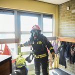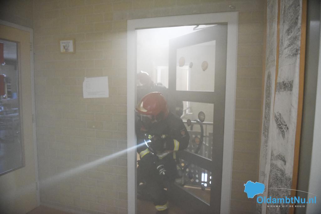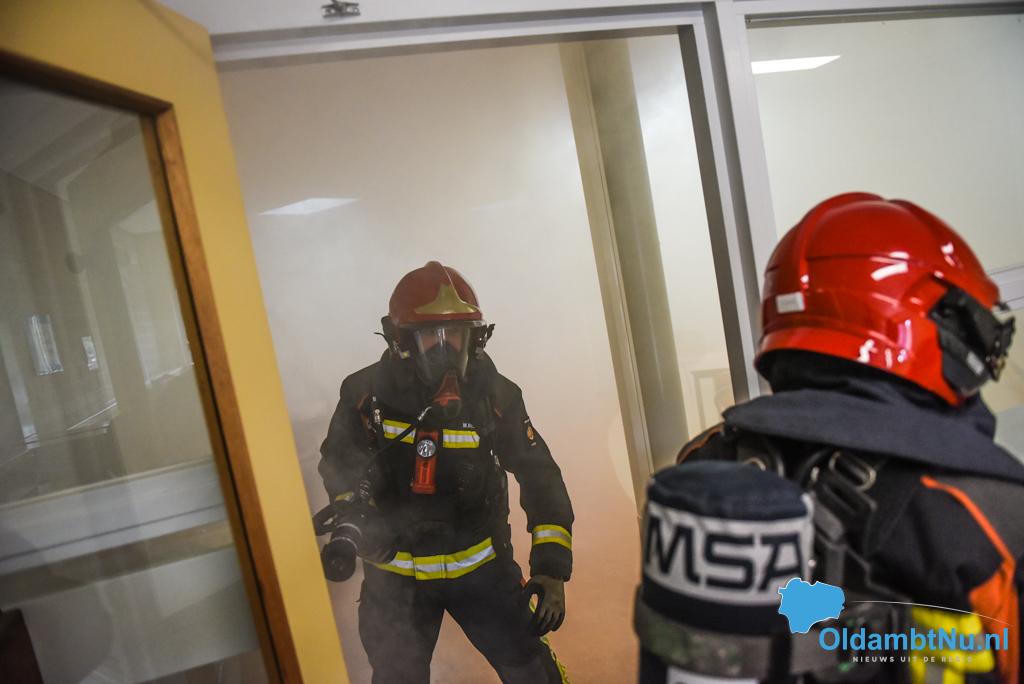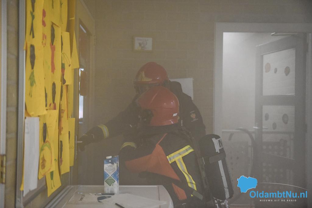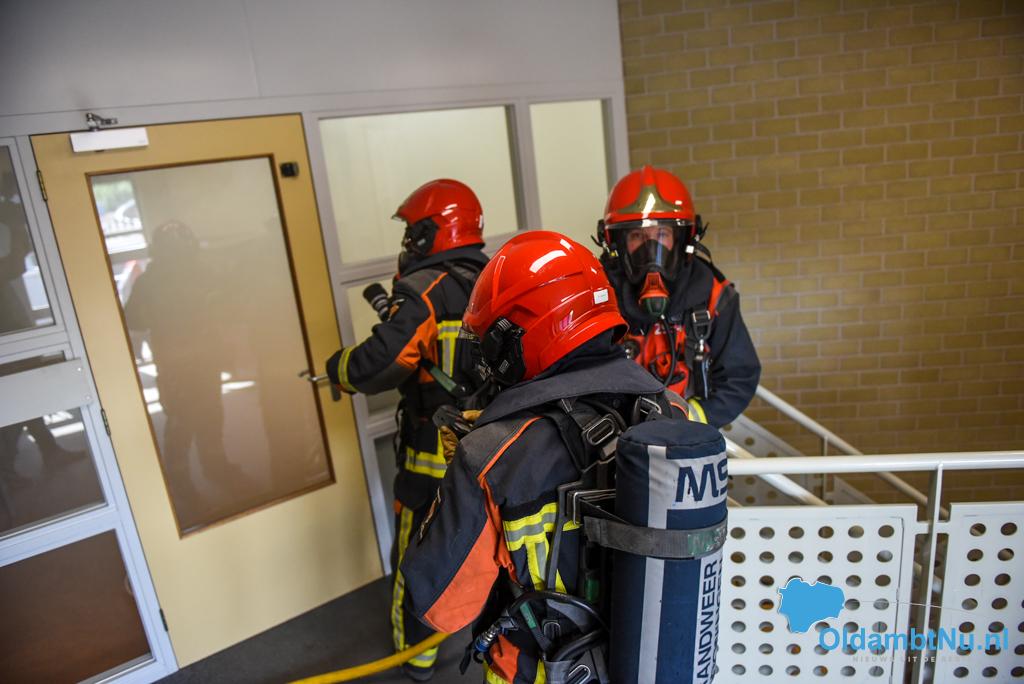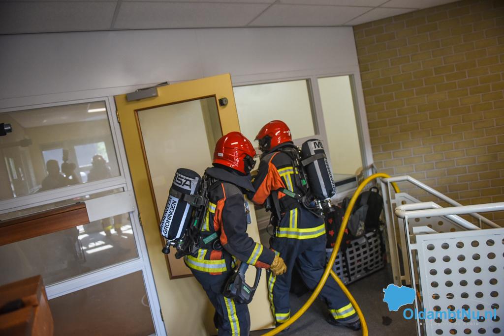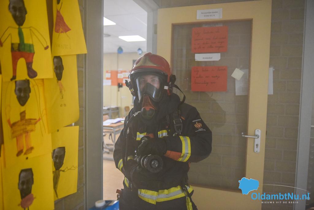 Finsterwolde – De brandweer van Finsterwolde heeft vrijdagmorgen samen met BHV en politie een oefening gehouden in basisschool Obs de Bouwsteen in Finsterwolde.