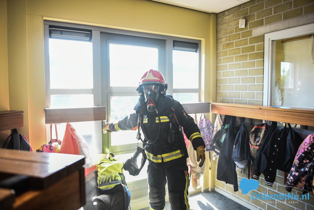 Brandweer Finsterwolde oefent op basisschool obs de Bouwsteen