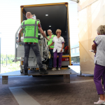 08.00 uur: De verhuizing is begonnen! 52 patiënten zullen vandaag van Winschoten naar Scheemda vervoerd worden. Dit gebeurt in speciaal ingerichte verhuiswagens. De verhuiswagens worden begeleid door gemotoriseerde verkeersregelaars.