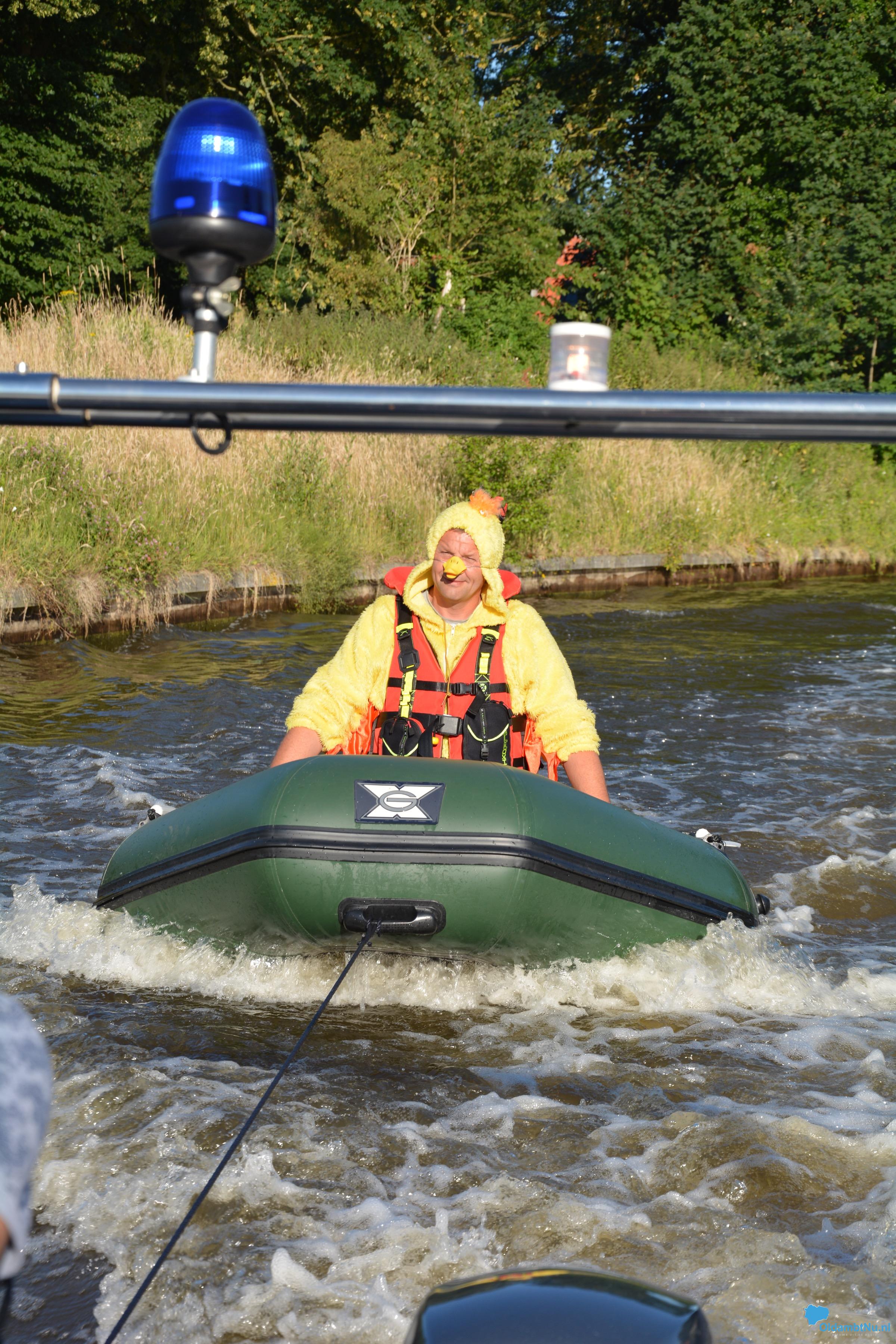 Nadat Jan was gehuld in een eenden pak (omdat hij ook een fanatiek OVRT lid is), werd hij in de boot rondgereden door zijn woonplaats Beerta. Hierna werd de boot te water gelaten en moest hij vermomd als ‘brandweer’ eend in een rubberboot liggen en werd hij rondgevaren achter de brandweerboot aan met bijpassende muziek.