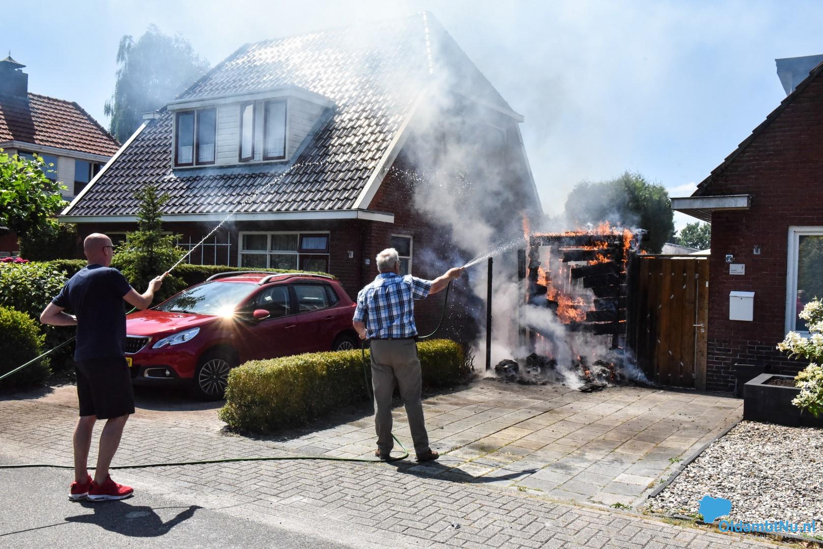 Buurtbewoners blussen schuttingbrand met tuinslang (video)