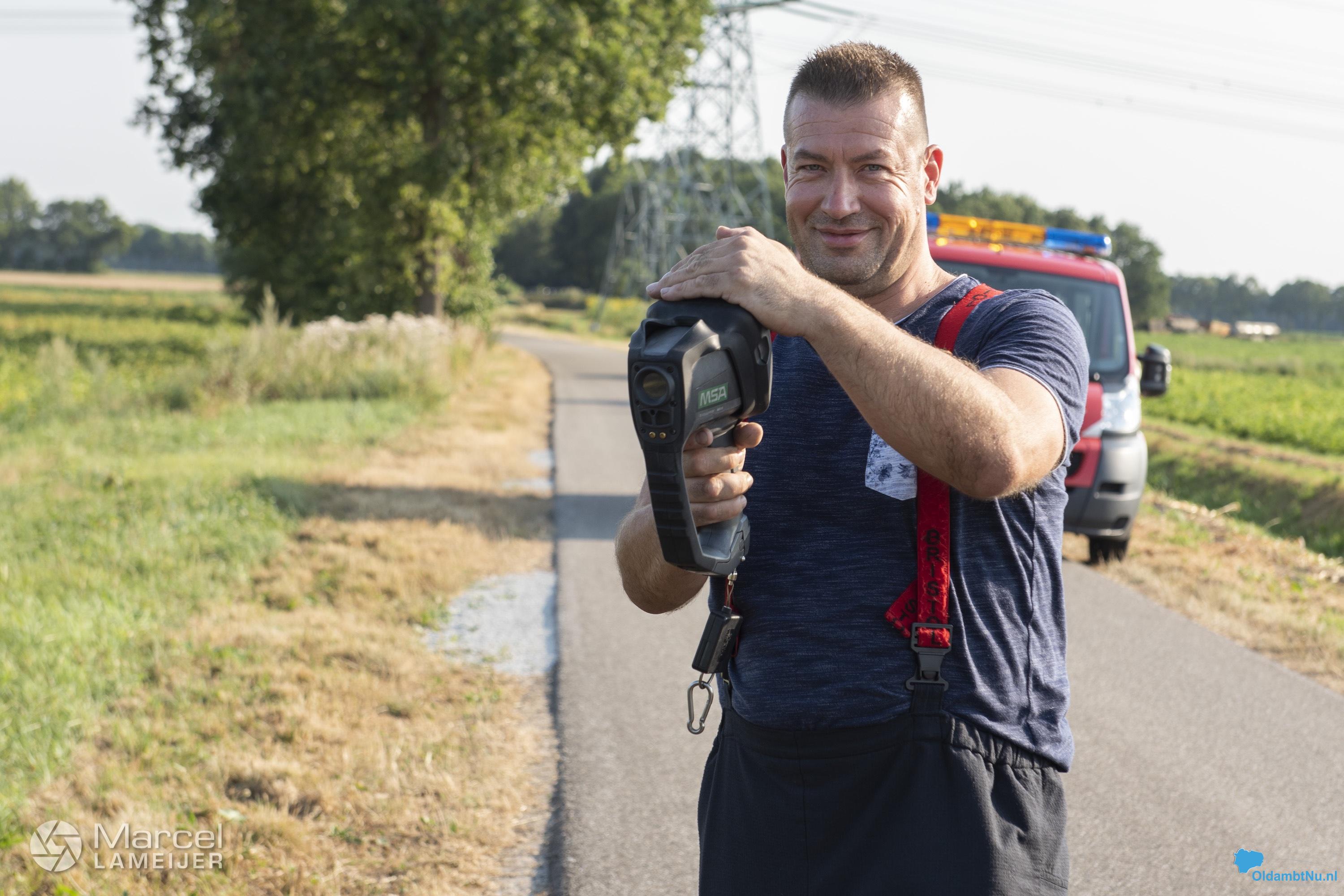 Op een klein plekje onder in een boom werd nog een warme plek gemeten. Een breekijzer en een emmer water uit de naast gelegen sloot bleken voldoende om ook dit laatste stukje afdoende te koelen. Hierdoor hoefde de tank niet te worden gevuld met oppervlaktewater maar kon op de kazerne de wagen met schoon water worden afgevuld.