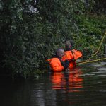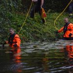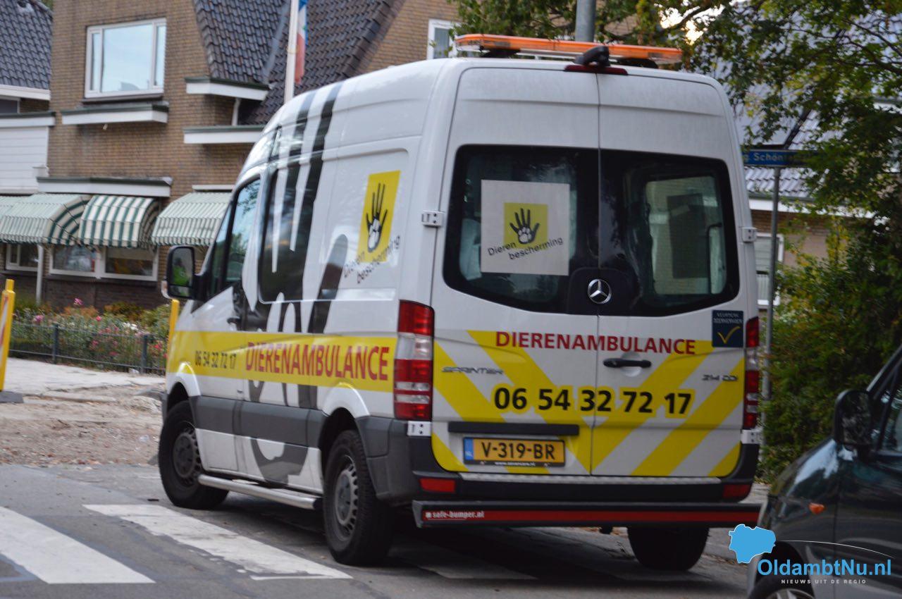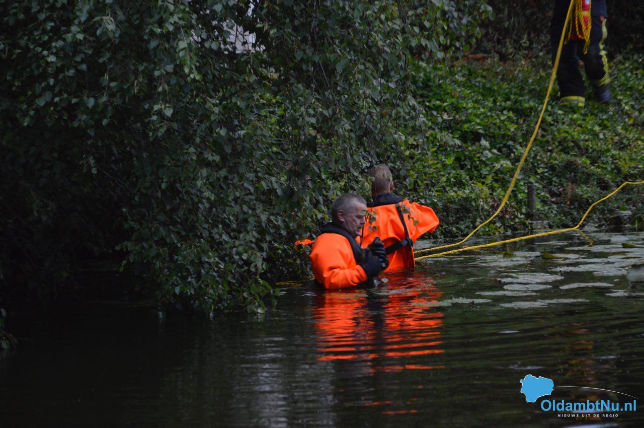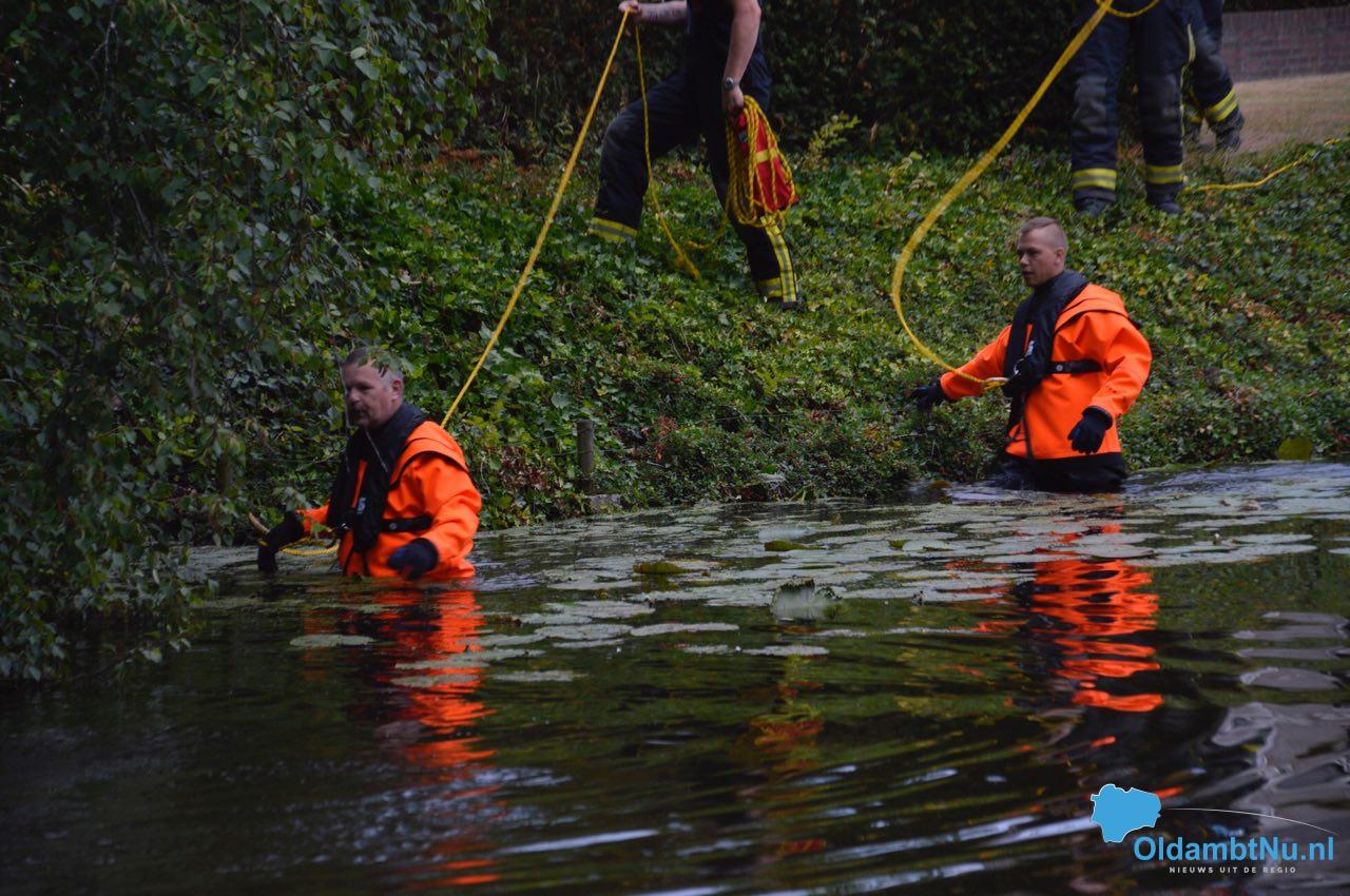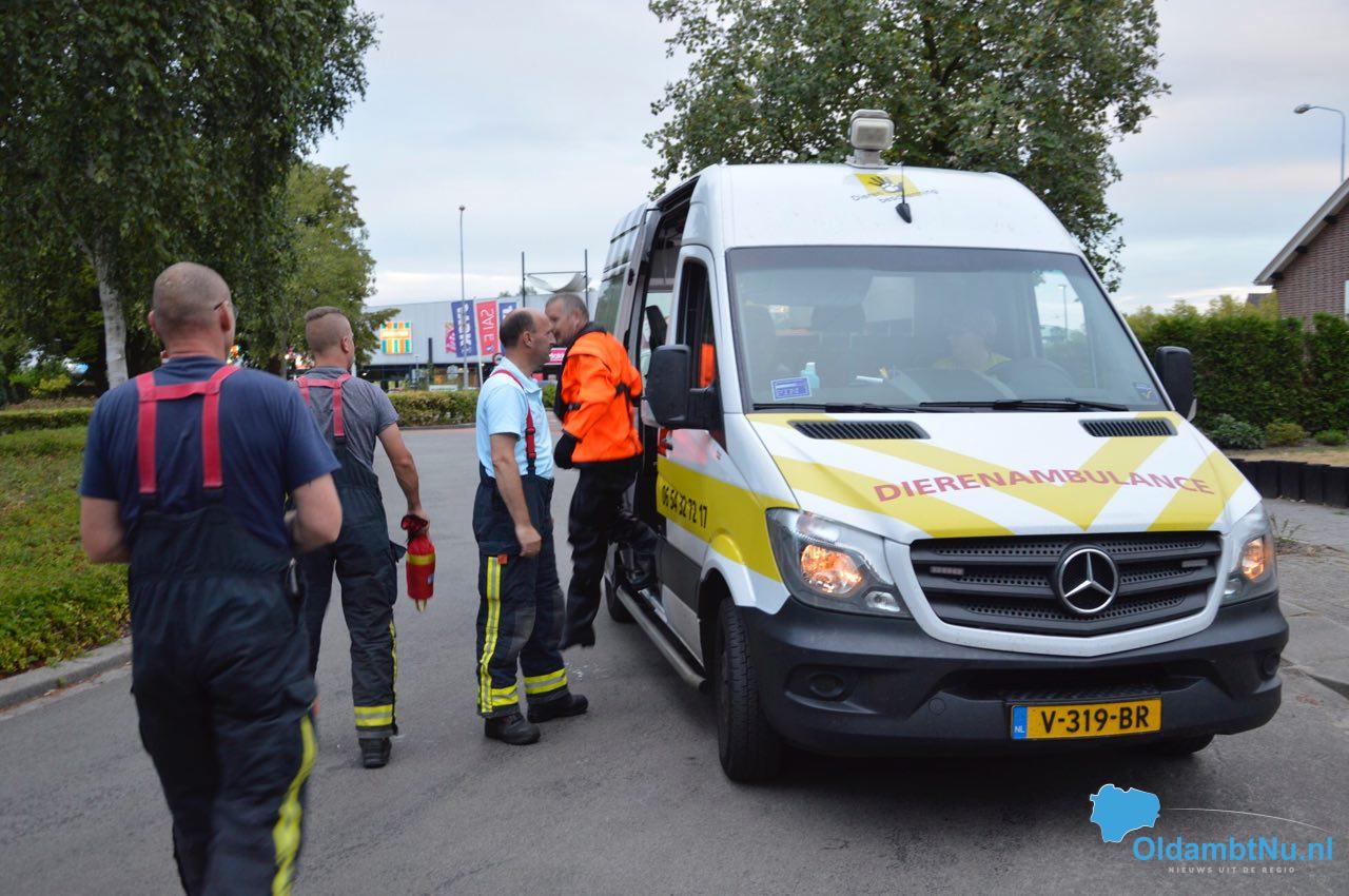 De brandweer is met droogpakken te water gegaan en heeft het beestje uit zijn benarde positie bevrijdt, waarna ze het beestje overgedragen hebben aan de dierenambulance.