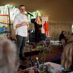 Naast de heerlijke driegangen-lunch was er ruimte voor muziek, poëzie én uitleg over de producten. ,,Voedsel verbindt”, zei mede-initiator Gert Noordhoff, die de hoop uitsprak dat hiermee een nieuwe traditie is geboren.