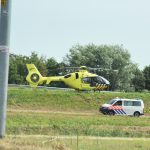 Nadat de piloot van de traumahelikopter een plekje had gezocht om te landen op de dijk bij de Beertsterbrug, wist de trauma-arts zich snel te kunnen ontfermen over het slachtoffer die per ambulance elders vandaan kwam.