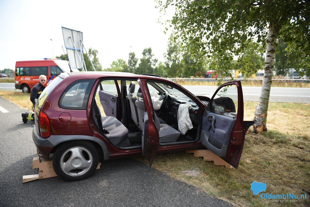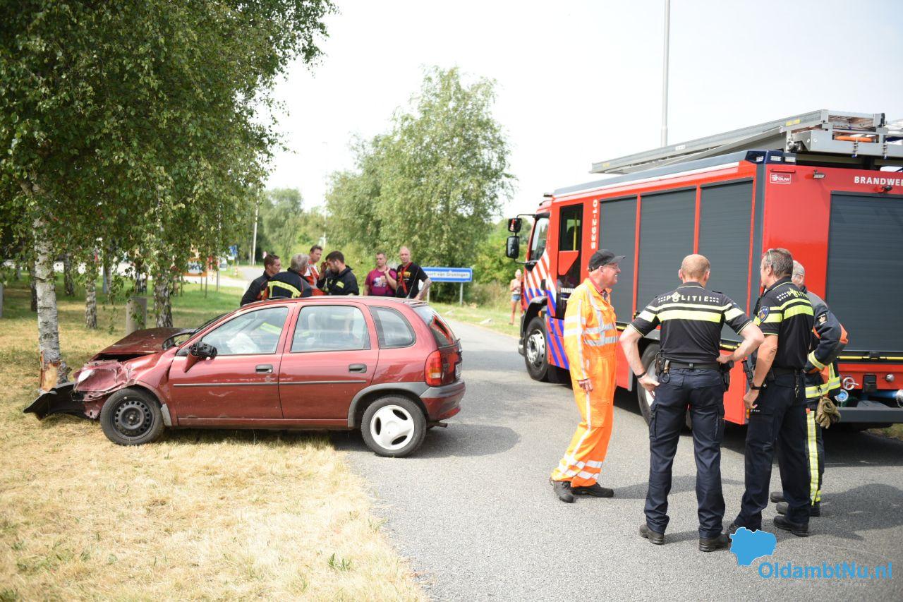 De automobilist komende vanuit de richting Duitsland, heeft door onbekende oorzaak de afslag gemist en is frontaal tegen de boom gereden. Brandweer, politie en ambulance kwamen ter plaatse.