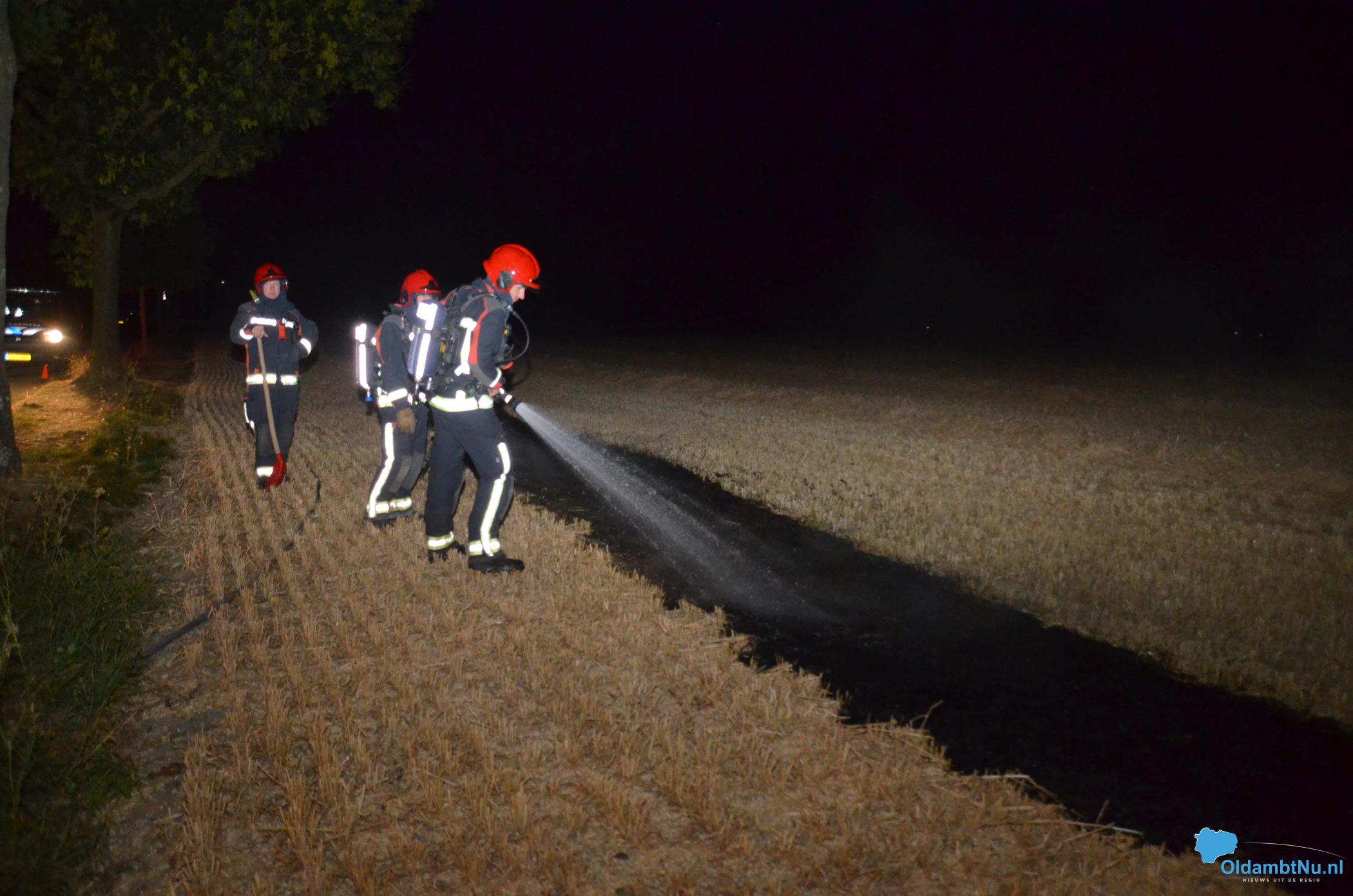 Omwonenden werden wakker van een brandgeur. Na een kleine zoektocht bleek in een weiland tegenover de woning een strook met stro in de brand te staan. De brandweer was snel ter plaatse en had het vuur snel onder controle.