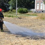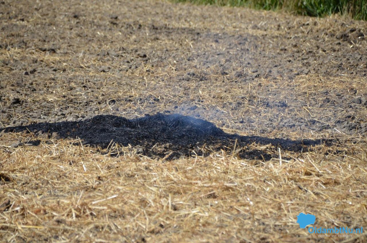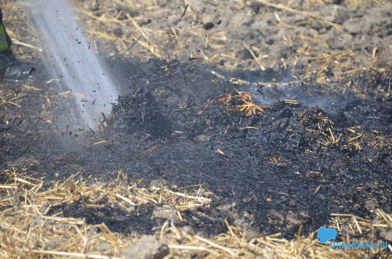Brandweer blust bultje stro op akker bij Nieuwolda