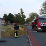 De brandweer moest eerst een hek open maken om bij de brand te komen. De brandweer heeft de laatste brandhaarden inmiddels geblust.