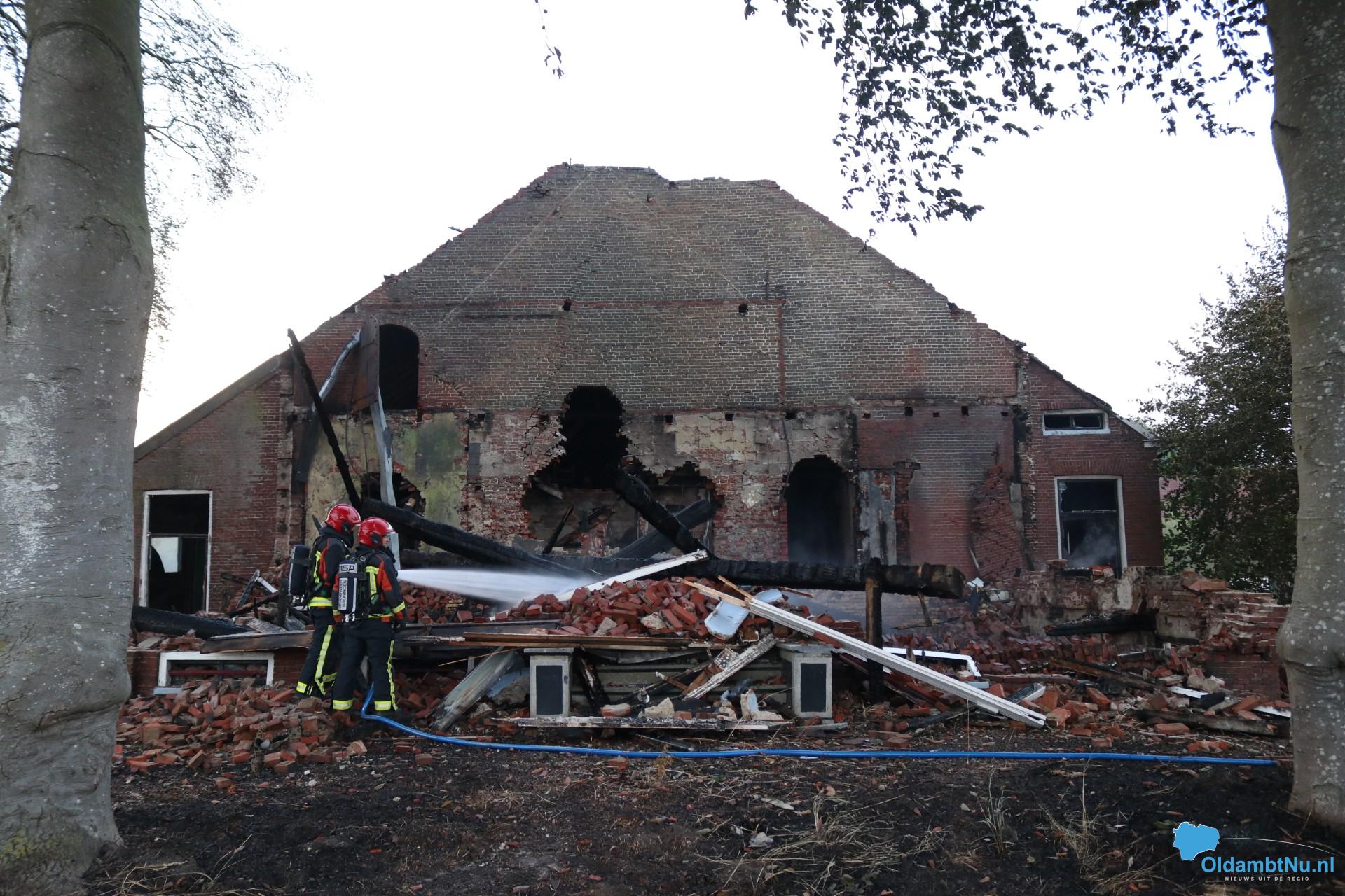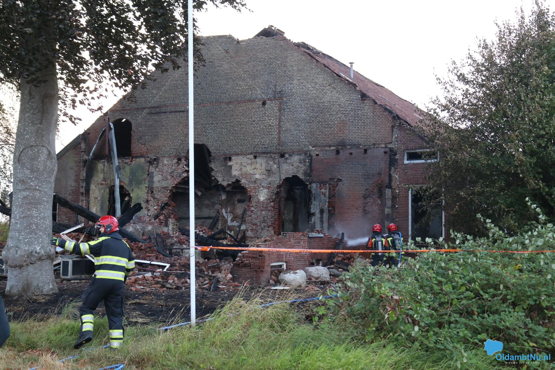 Ter plaatse bleek dat de leegstaande boerderij die afgelopen nacht afbrandde in Oostwold  weer was gaan branden.