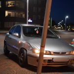 Een automobilist heeft vermoedelijk een lantaarnpaal over het hoofd gezien. De bestuurder is tegen de paal gebotst.