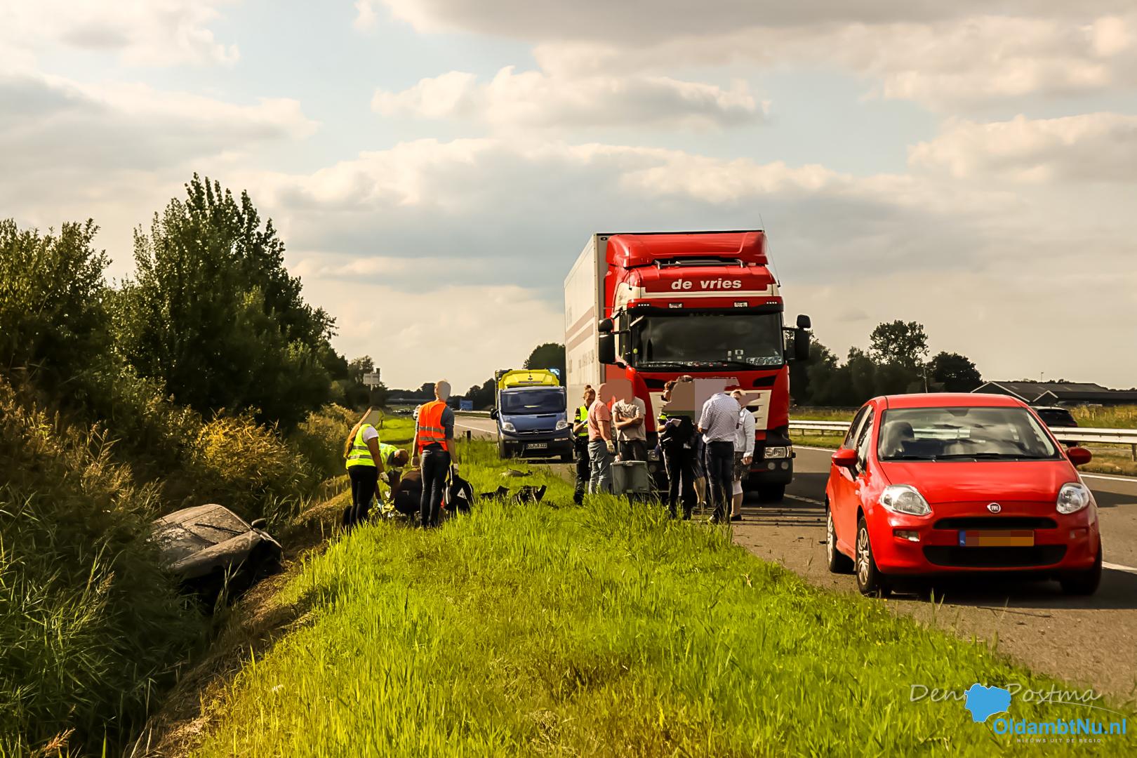 Auto raakt zwaar beschadigd op A7; een gewonde