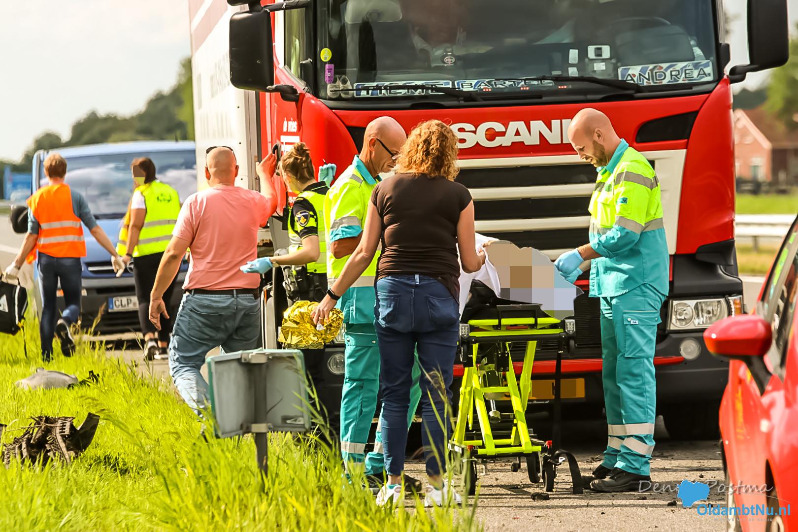 Volgens een getuige zou er nog een derde auto bij betrokken zijn die licht beschadigd is geraakt. De bestuurder van de vrachtwagen was getuige en stopte om hulp te bieden.