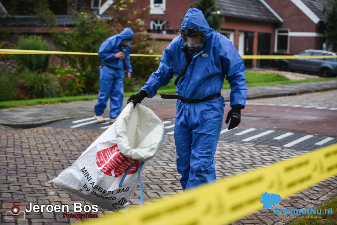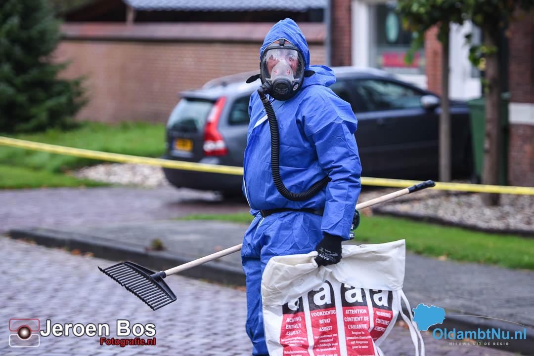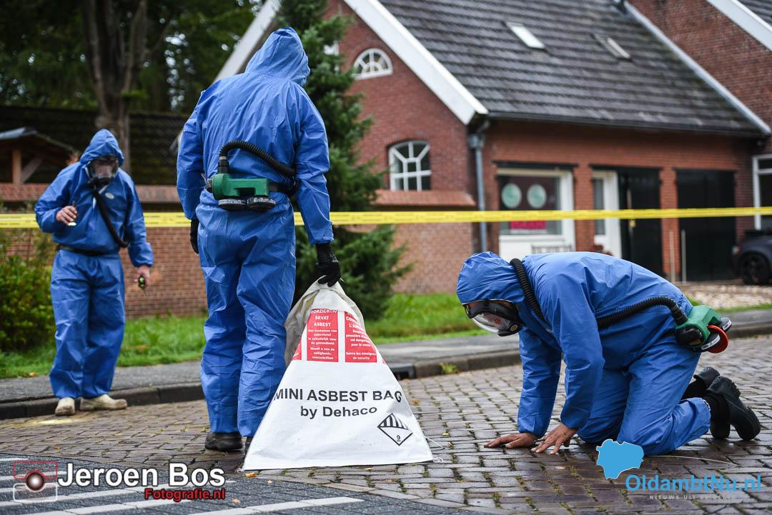 Omwonenden merkten de deeltjes op het wegdek op en schakelden direct de gemeente in. Na een snelle inspectie bleek het om asbest te gaan. Steenhuis Sloopwerken uit Scheemda is inmiddels aanwezig en zal de weg gaan schoonmaken. Een asbest-laborant zal ook ter plaatse komen om de in de straat geparkeerde auto’s te controleren op contaminatie. De weg zal door de asbestruimers in witte pakken minutieus worden schoongemaakt met stofzuigers.