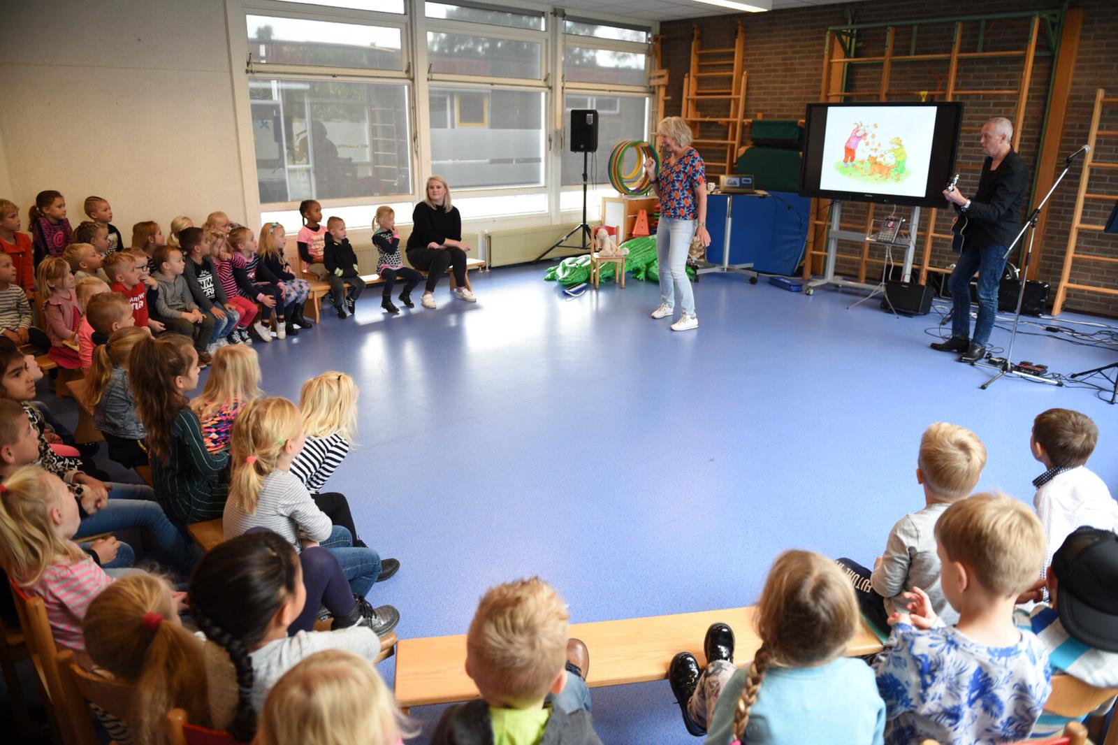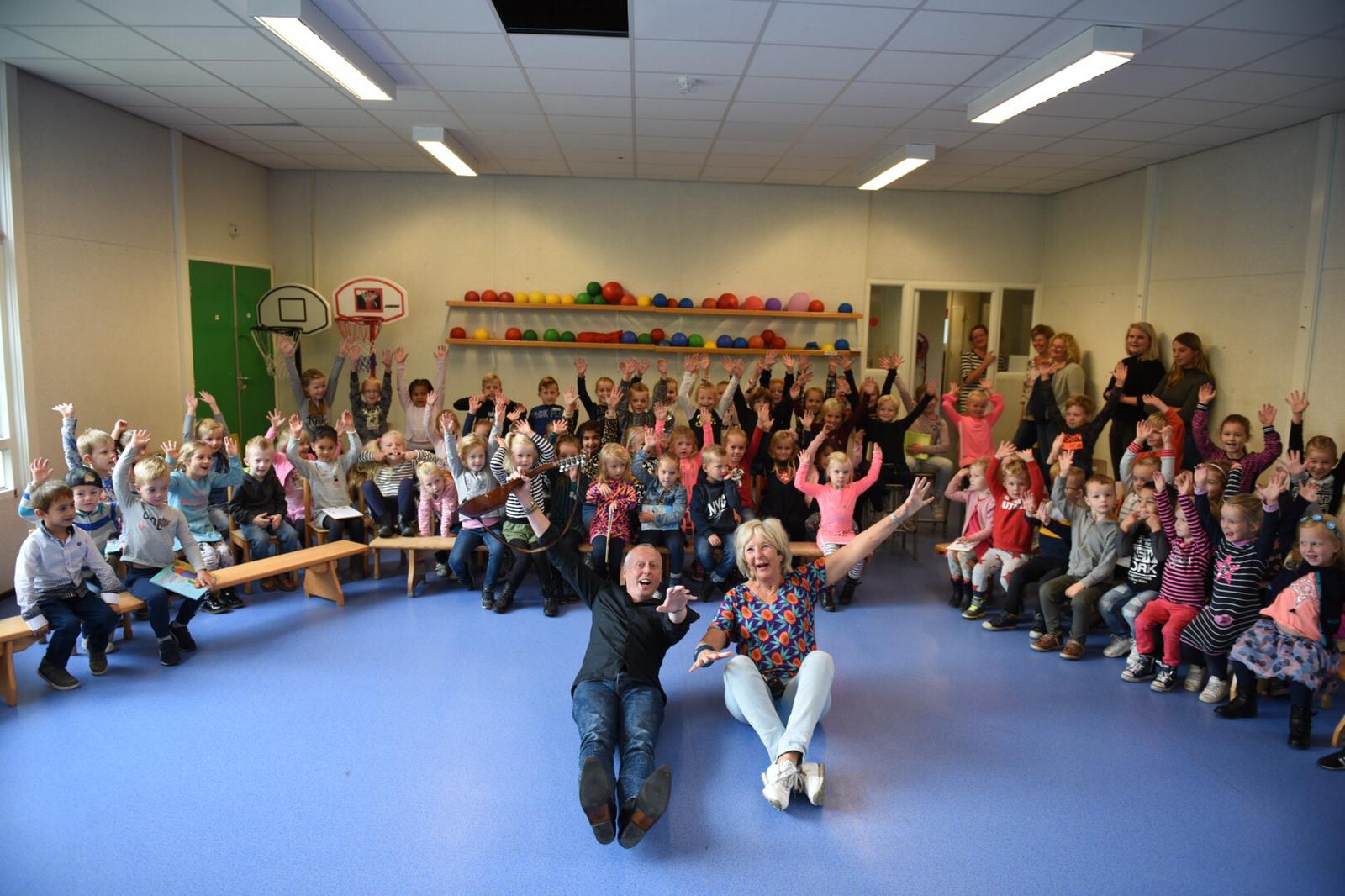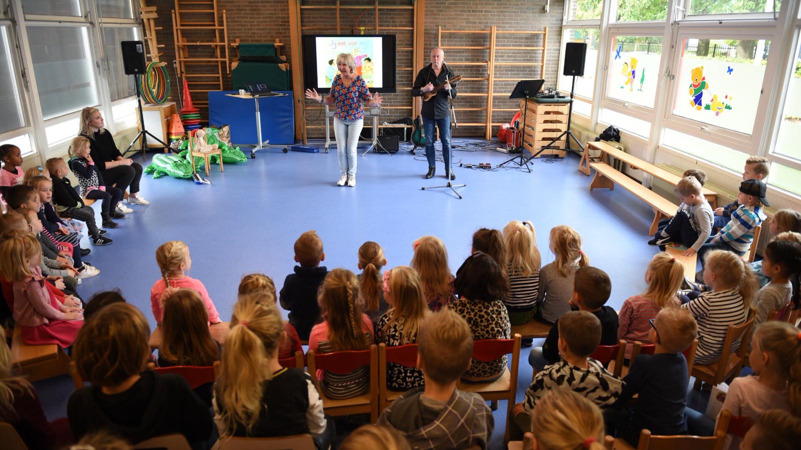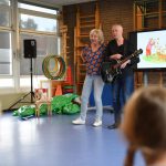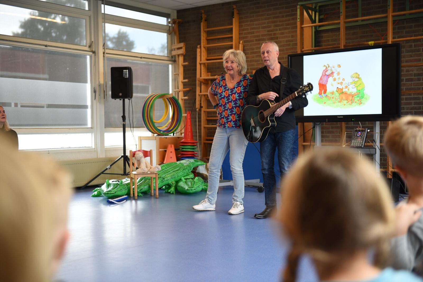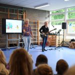 Winschoten – Op maandag 1 oktober werden de groepen 1 t/m 3 en 4 t/m 6 getrakteerd op een voorstelling door kinderboekenschrijfster Vivian den Hollander en muzikant Mattie Poels. De jongste groepen genoten van een voorstelling ”Jij ook van mij”, de oudsten van ”Spekkie en Sproet, vrienden door dik en dun!”