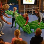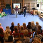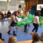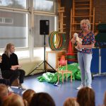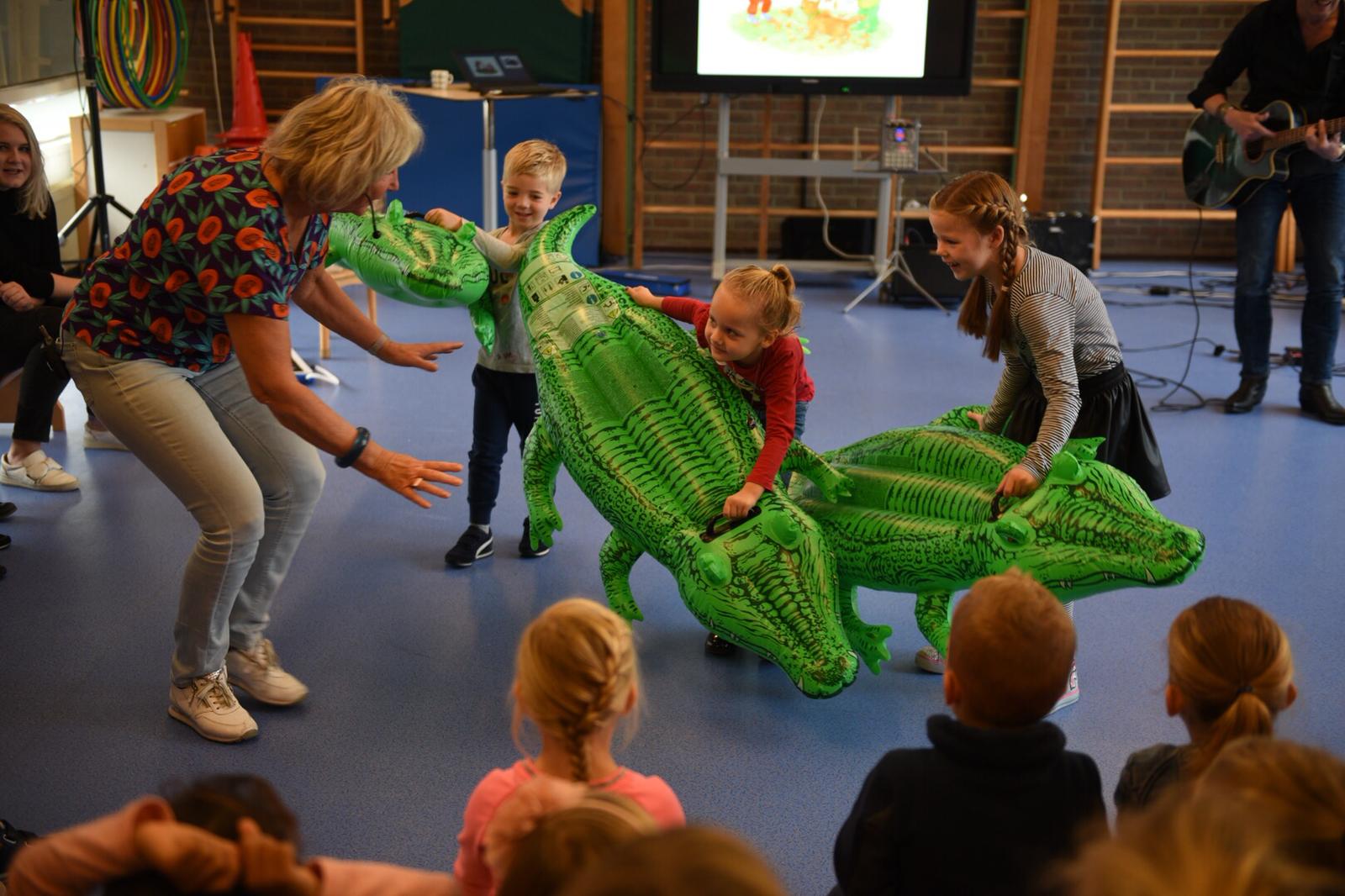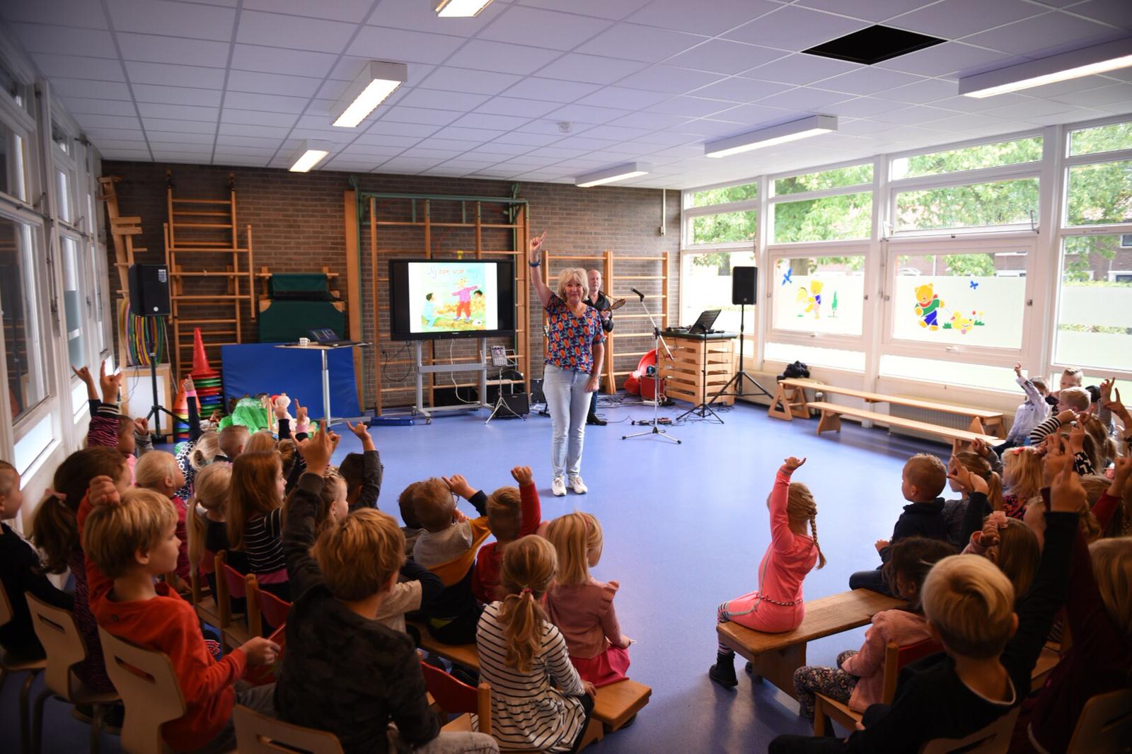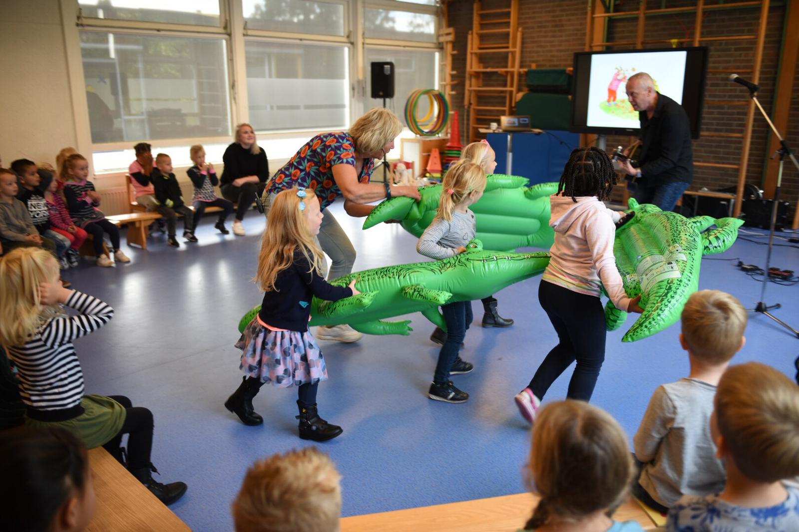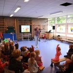 Winschoten – Op maandag 1 oktober werden de groepen 1 t/m 3 en 4 t/m 6 getrakteerd op een voorstelling door kinderboekenschrijfster Vivian den Hollander en muzikant Mattie Poels. De jongste groepen genoten van een voorstelling ”Jij ook van mij”, de oudsten van ”Spekkie en Sproet, vrienden door dik en dun!”