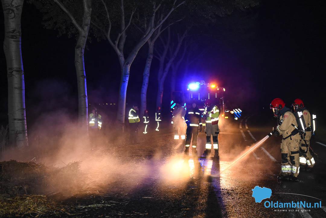 Nieuwolda – Brandweer Wagenborgen werd woensdag op donderdagnacht opgeroepen voor een brand naast de Gereweg(N362) de weg van Scheemda naar Delfzijl.