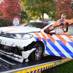 De airbags van de politieauto gingen door de klap af en de auto belandde in een lager gelegen berm. De betrokken agenten werden door ambulancepersoneel gecontroleerd op verwondingen, ze hoefden niet mee naar het ziekenhuis.