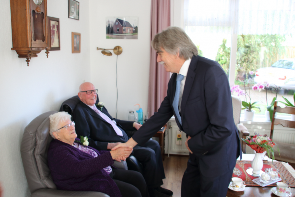 De burgemeester van de gemeente Delfzijl, Gerard Beukema, feliciteerde afgelopen zaterdag het echtpaar Olthoff-Smit namens de gemeente Delfzijl.