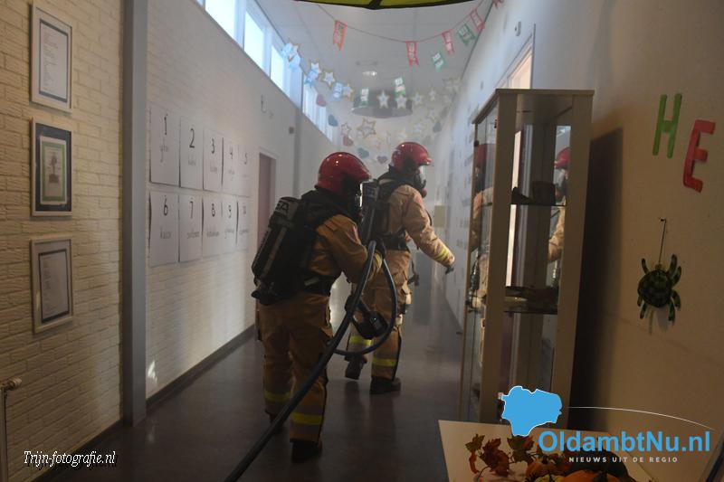 Brandweer Finsterwolde oefent op OBS de Uilenburcht in Beerta