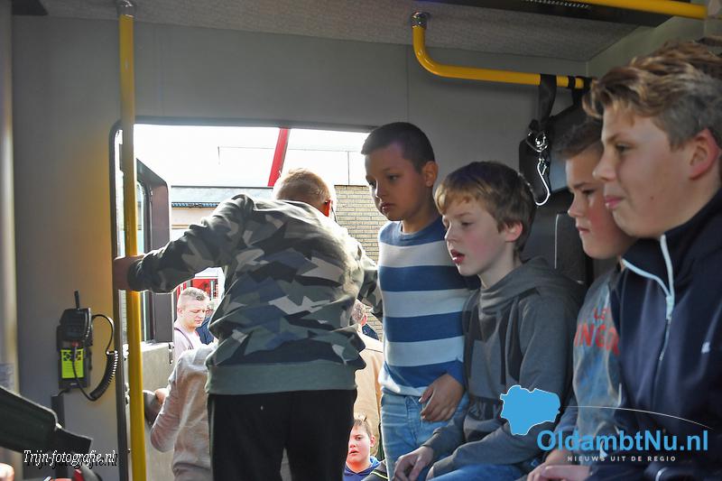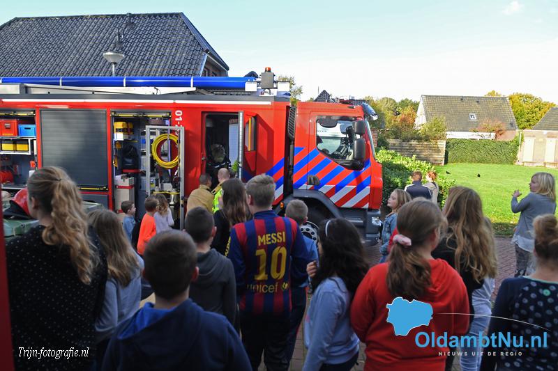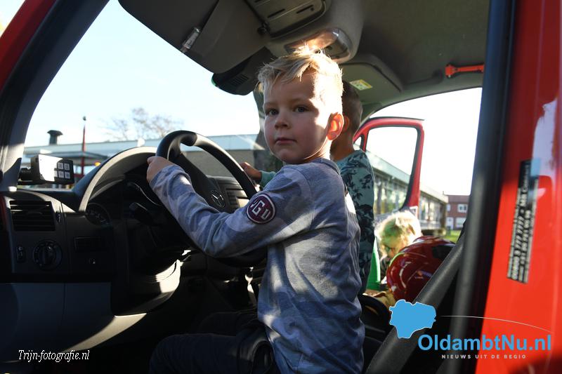 Leerlingen mochten nog een kijkje nemen in de brandweer auto wat men erg interessant vond.