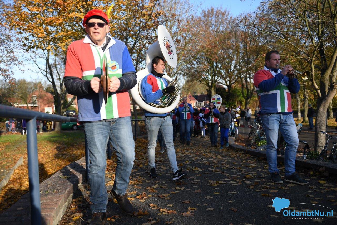 Tijdens de aankomst in de haven werden ze opgewacht door ongeveer 120 enthousiaste kinderen met papa’s en mama’s, opa’s en oma’s. Na het warme welkom hebben de Sint en zijn Pieten in optocht met de ‘Bierspiekers’ een boerenkapel uit Spijk een wandeling gemaakt door het dorp. Aan het eind van de wandeling kwamen ze uit bij activiteitencentrum ‘de Iemekörf’ waar het welkomstfeest plaats vond.