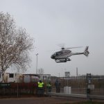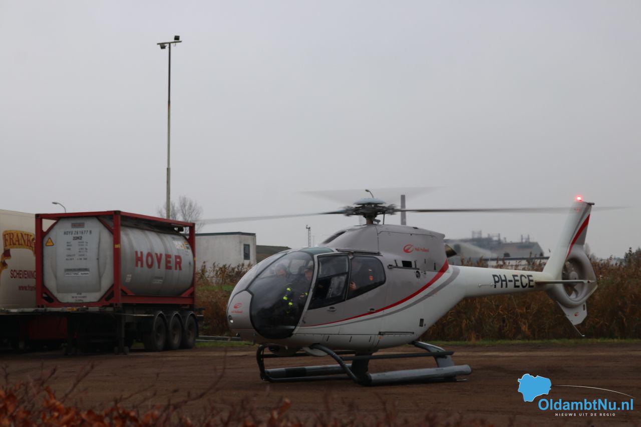 Winschoten: Vanuit een helikopter wordt de brand van boven in beeld gebracht. #samenwerken