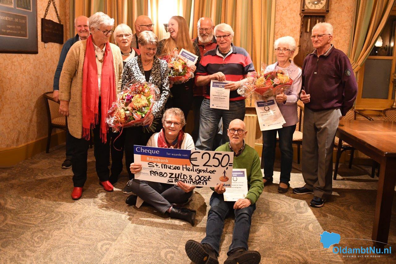 En terwijl de spanning steeg in de zaal kwam wethouder Laura Broekhuizen op het podium om de winnaars bekend te maken en de prijzen uit te reiken. De groepsprijs voor vrijwilligers werd bekend gemaakt door Harriët Potze van de Rabobank. De bank stelt zoals ieder jaar € 250,00 beschikbaar voor de groepswinnaars.