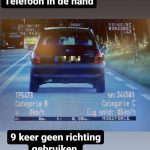 “De bestuurder had onder andere zijn telefoon in de hand, droeg geen gordel, gaf 9x geen richting aan en zijn snelheid was te hoog in de binnen de bebouwde kom.” meldt de politie op Instagram. Ook buiten de bebouwde kom had de bestuurder moeite met zijn voertuig binnen de lijntjes te houden. “hij reed slingerend over de weg” aldus de politie.