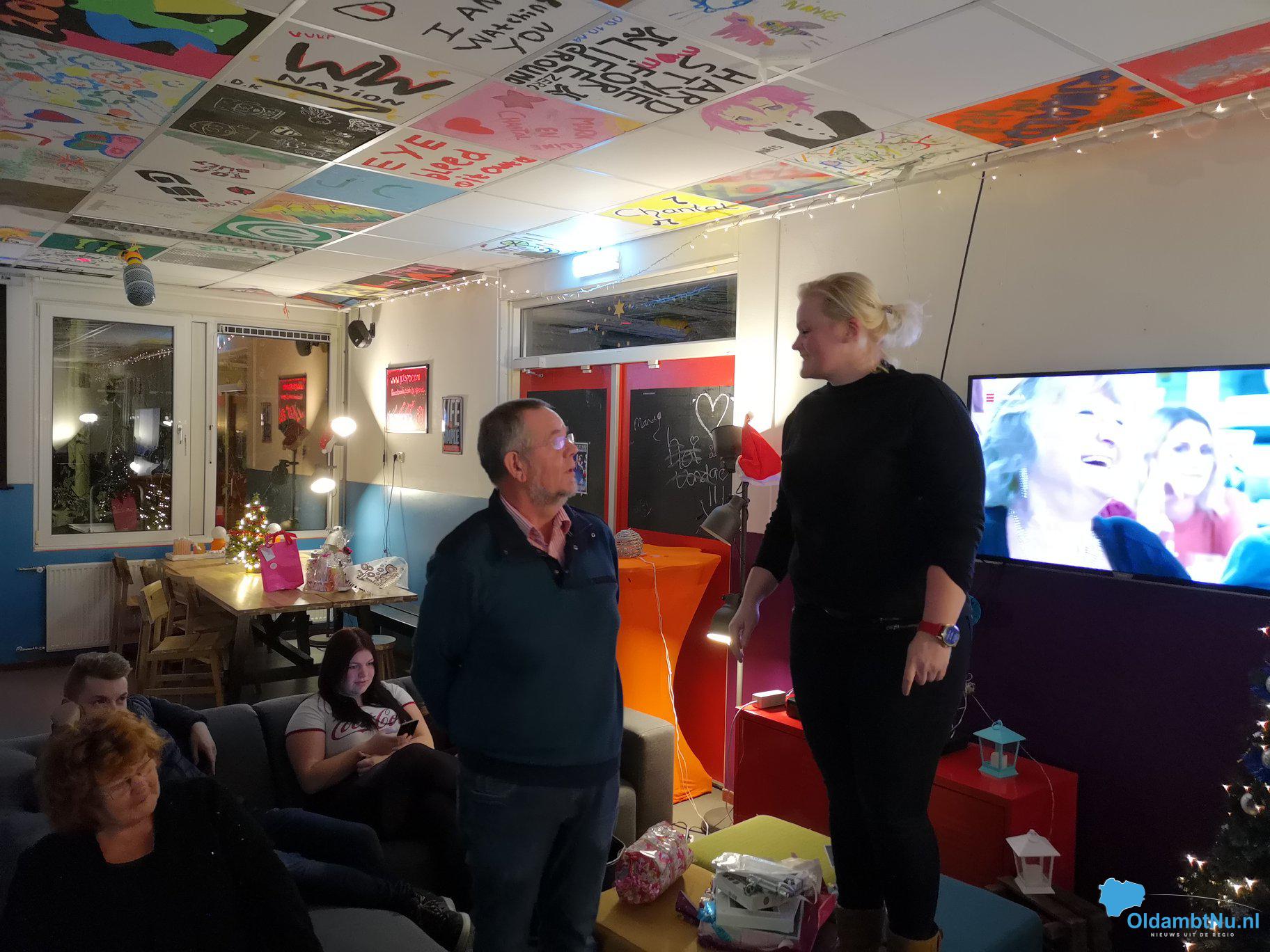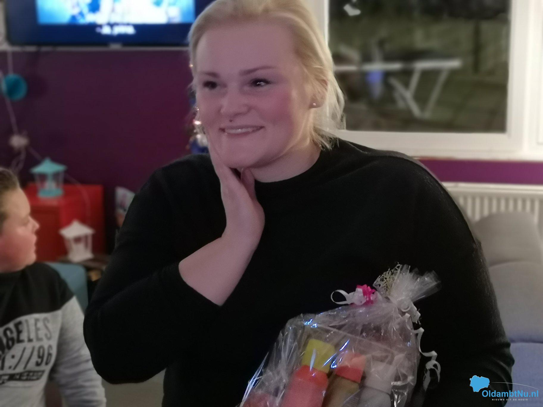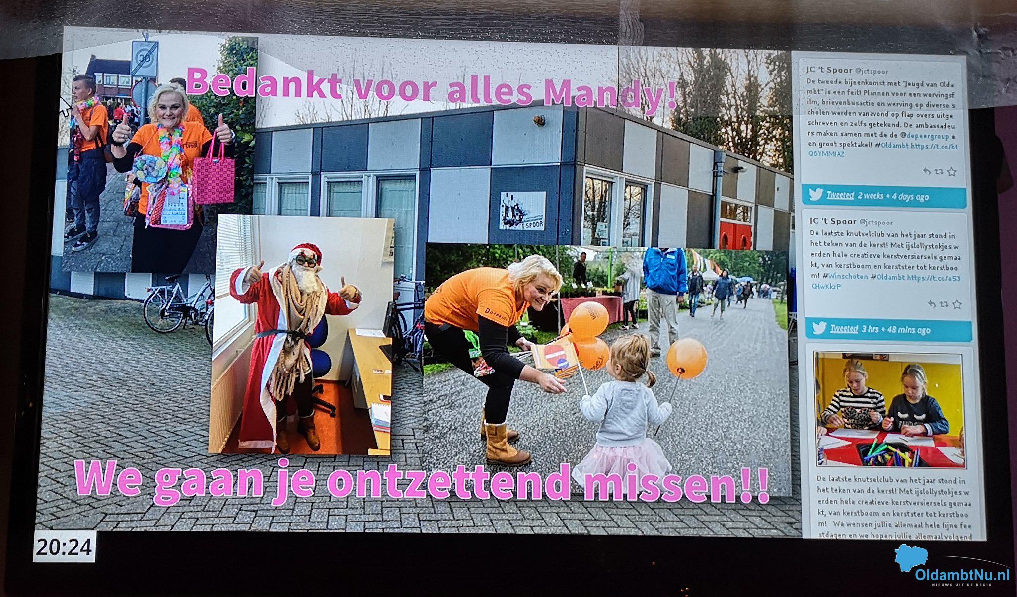 Fotocollages werden op de beeldschermen gepresenteerd met de altijd goedlachse Mandy. Ook de directe familie was aanwezig, met trotse moeder Liesbeth, zus, vriend en zwager. Toespraken waren er van Jenny Garst, namens Sociaal Werk Oldambt, en Jan Heeringa, namens Wijkplatform Parkwijk/Kloostervallei.