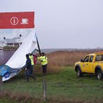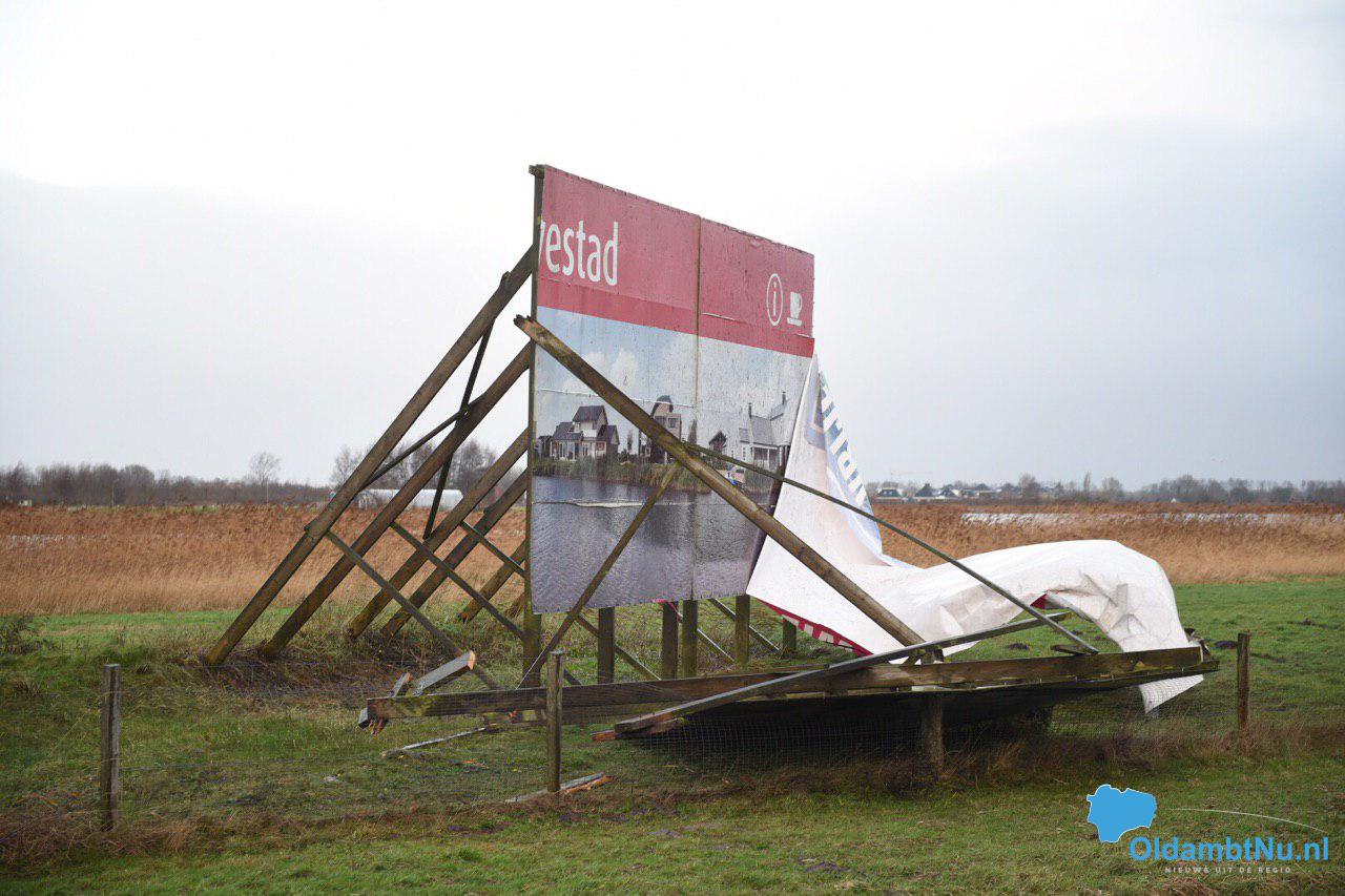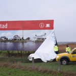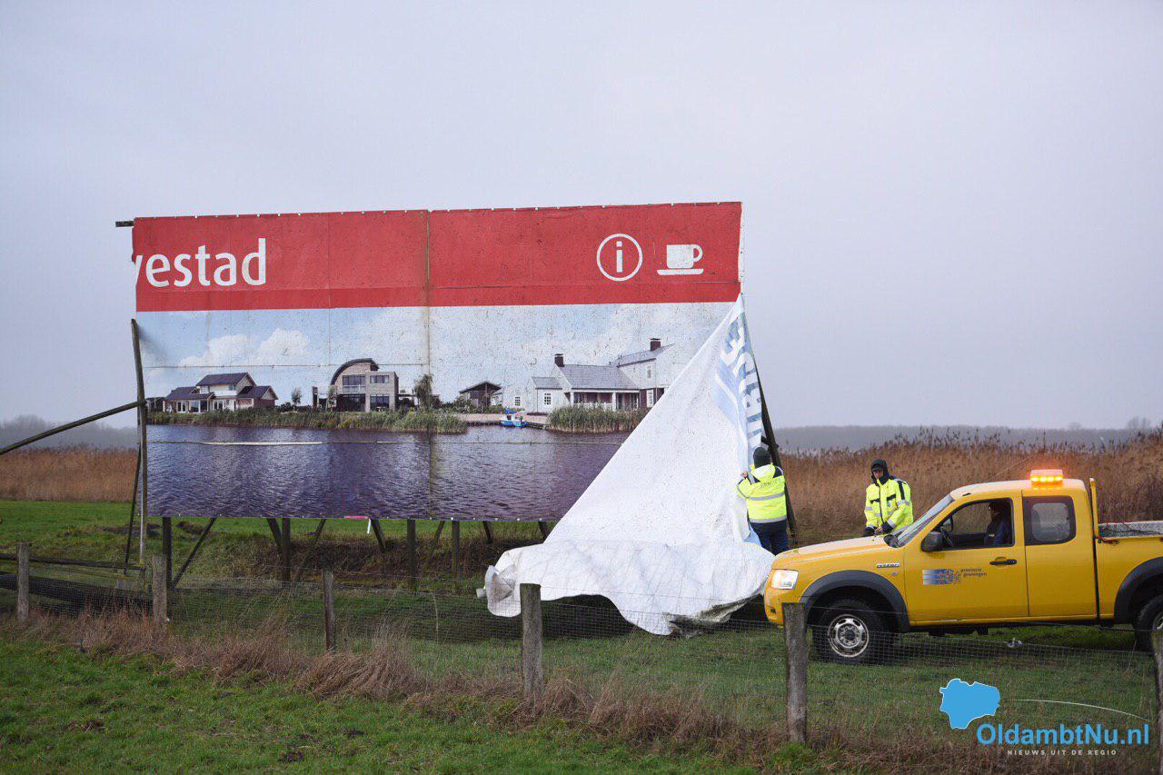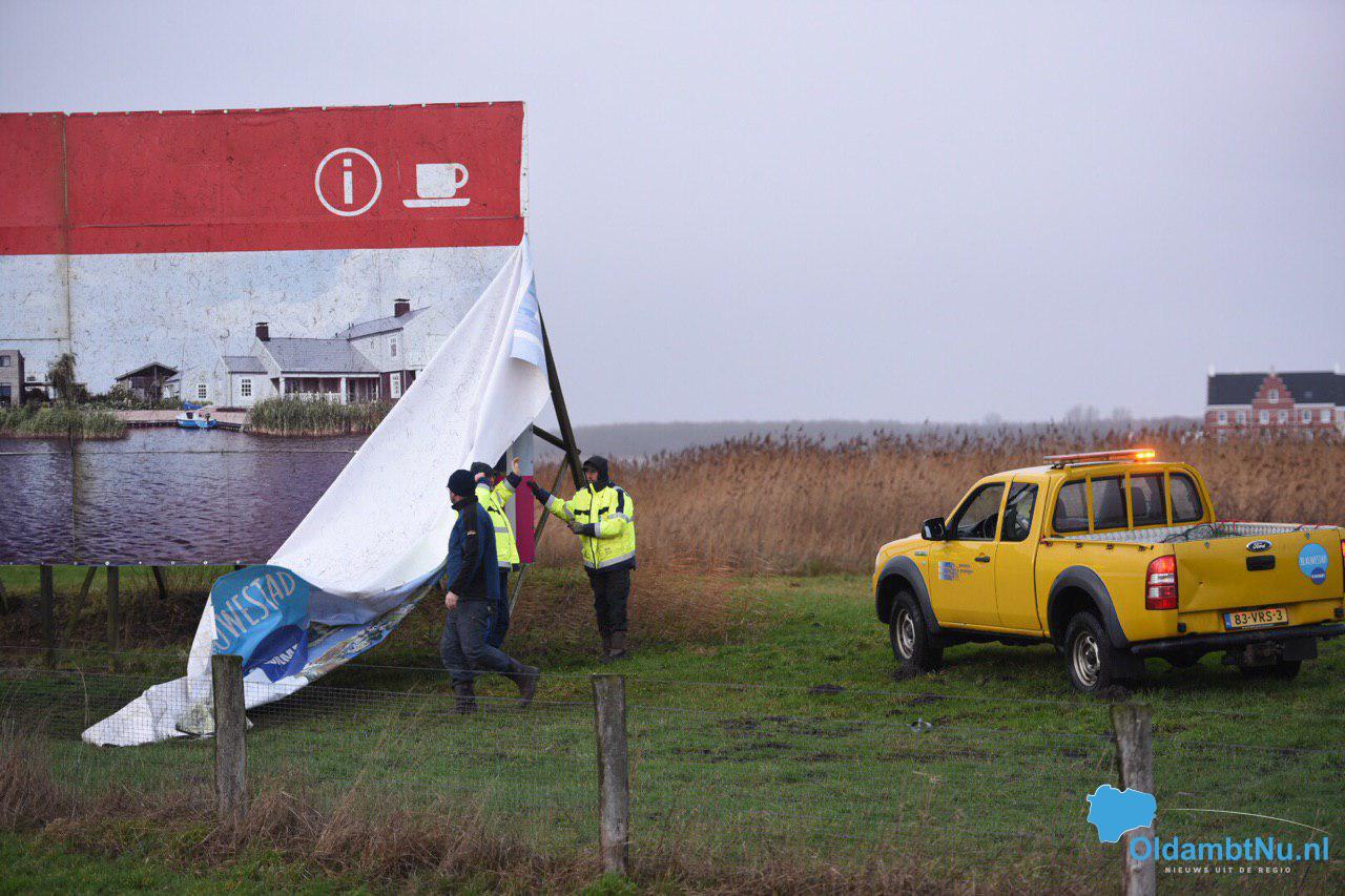 Oldambt – Het waait in grote delen van Nederland behoorlijk hard vandaag. Zo ook in Oldambt. Langs de A7 ontstond een levensgevaarlijke situatie nadat een groot spandoek los hing. De provincie heeft het spandoek verwijderd.