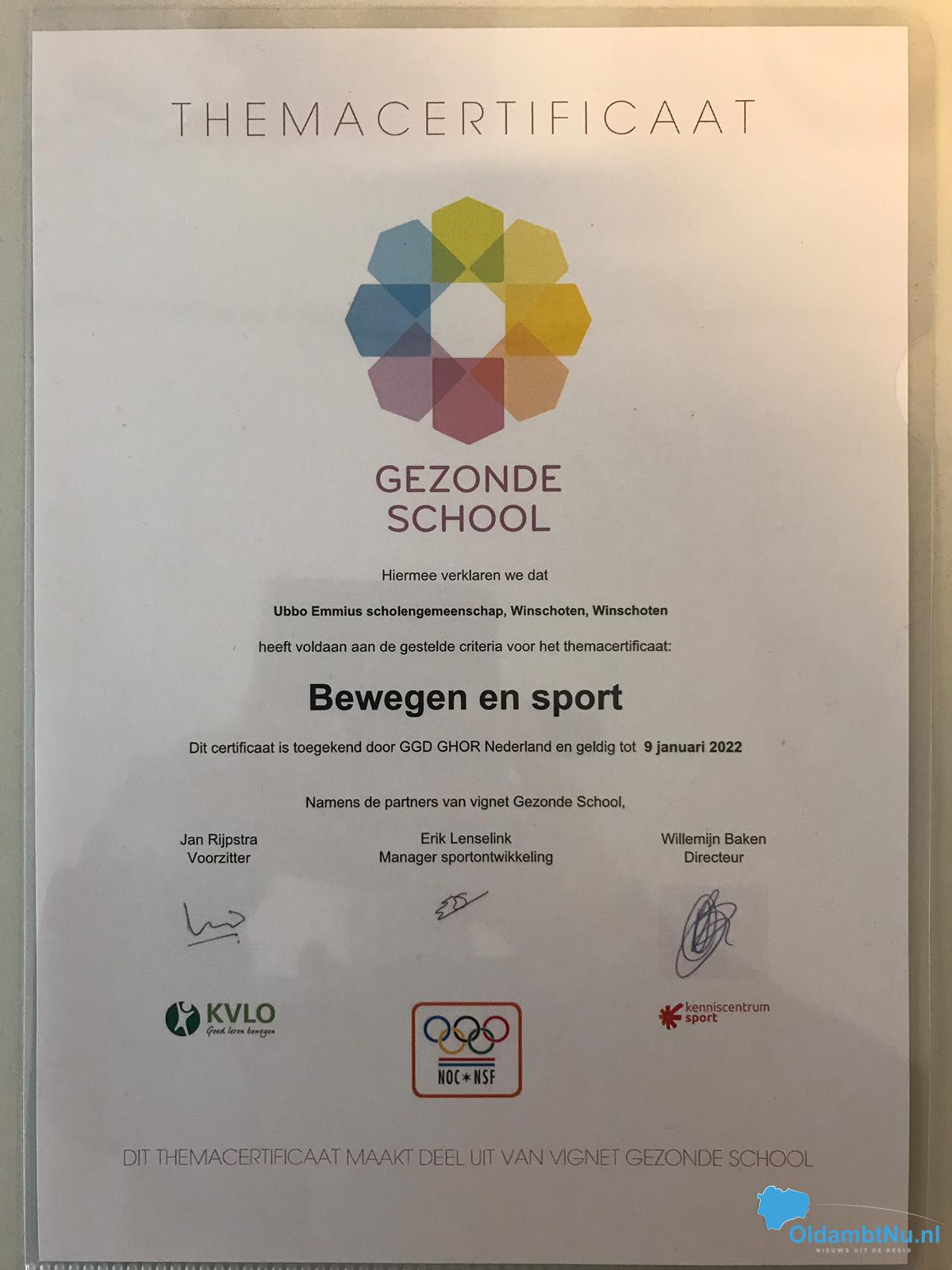 Winschoten – Ubbo Emmius Winschoten is er in geslaagd om opnieuw het themacertificaat Sport en Bewegen te behalen. Drie jaar terug was het dat voor deze locatie al een unieke prestatie door alle vijf themacertificaten van het vignet Gezonde School binnen één schooljaar te behalen. De school heeft zich daarmee kunnen presenteren als de eerste Gezonde School van Nederland. Dit schooljaar probeert Ubbo Emmius Winschoten opnieuw alle vijf themacertificaten van het vignet Gezonde School te behalen. Een themacertificaat moet iedere drie jaar opnieuw behaald worden; daarmee laat je als school zien dat je aan de criteria van een Gezonde School voldoet.